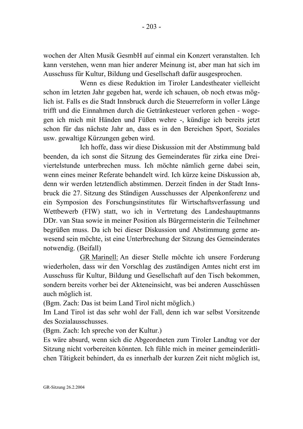 beenden, da ich sonst die Sitzung des Gemeinderates für zirka eine Dreiviertelstunde unterbrechen muss. Ich möchte nämlich gerne dabei sein,