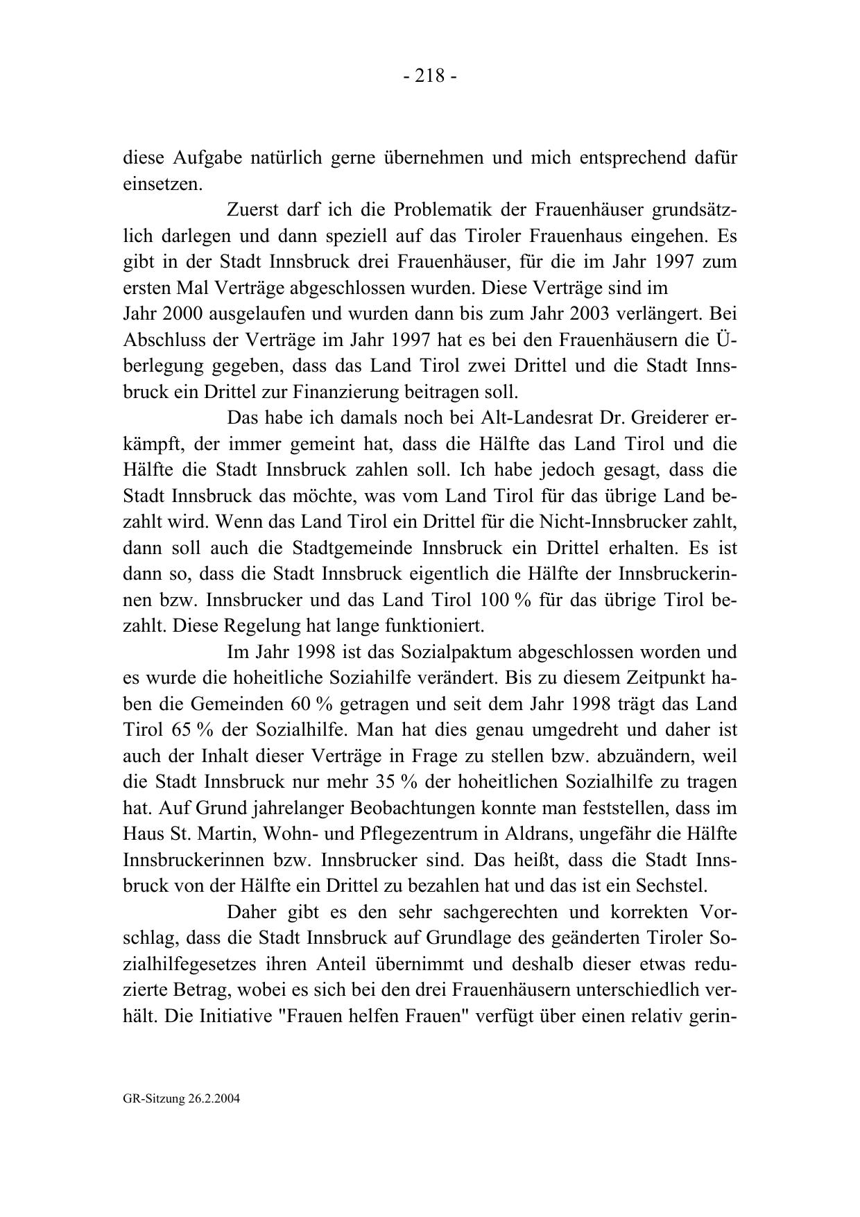Daher gibt es den sehr sachgerechten und korrekten Vorschlag, dass die Stadt Innsbruck auf Grundlage des geänderten Tiroler Sozialhilfegesetzes ihren Anteil übernimmt und deshalb dieser etwas reduzierte Betrag, wobei es sich bei den drei Frauenhäusern unterschiedlich verhält. Die Initiative "Frauen helfen Frauen" verfügt über einen relativ gerin-