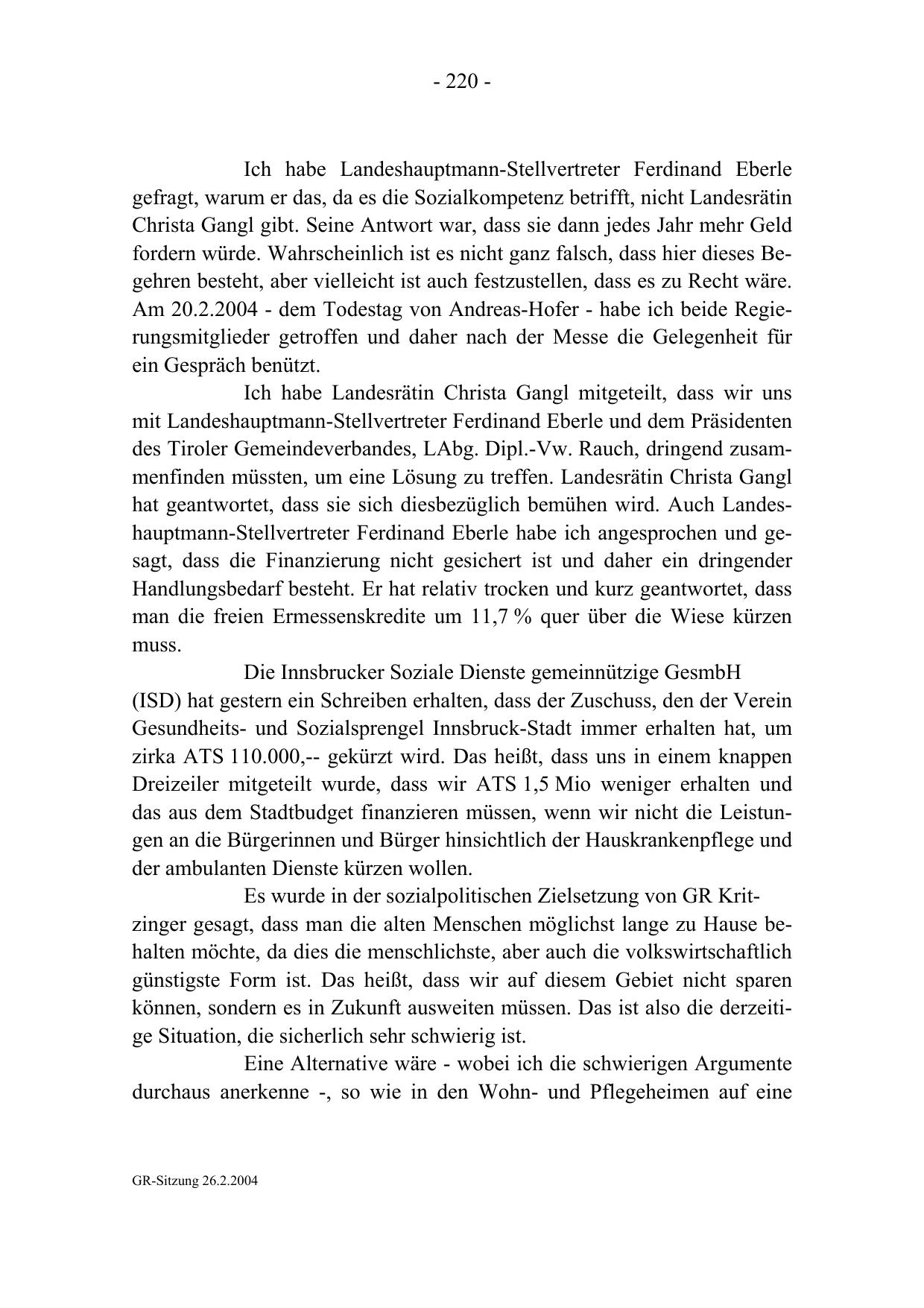Am 20.2.2004 - dem Todestag von Andreas-Hofer - habe ich beide Regierungsmitglieder getroffen und daher nach der Messe die Gelegenheit für