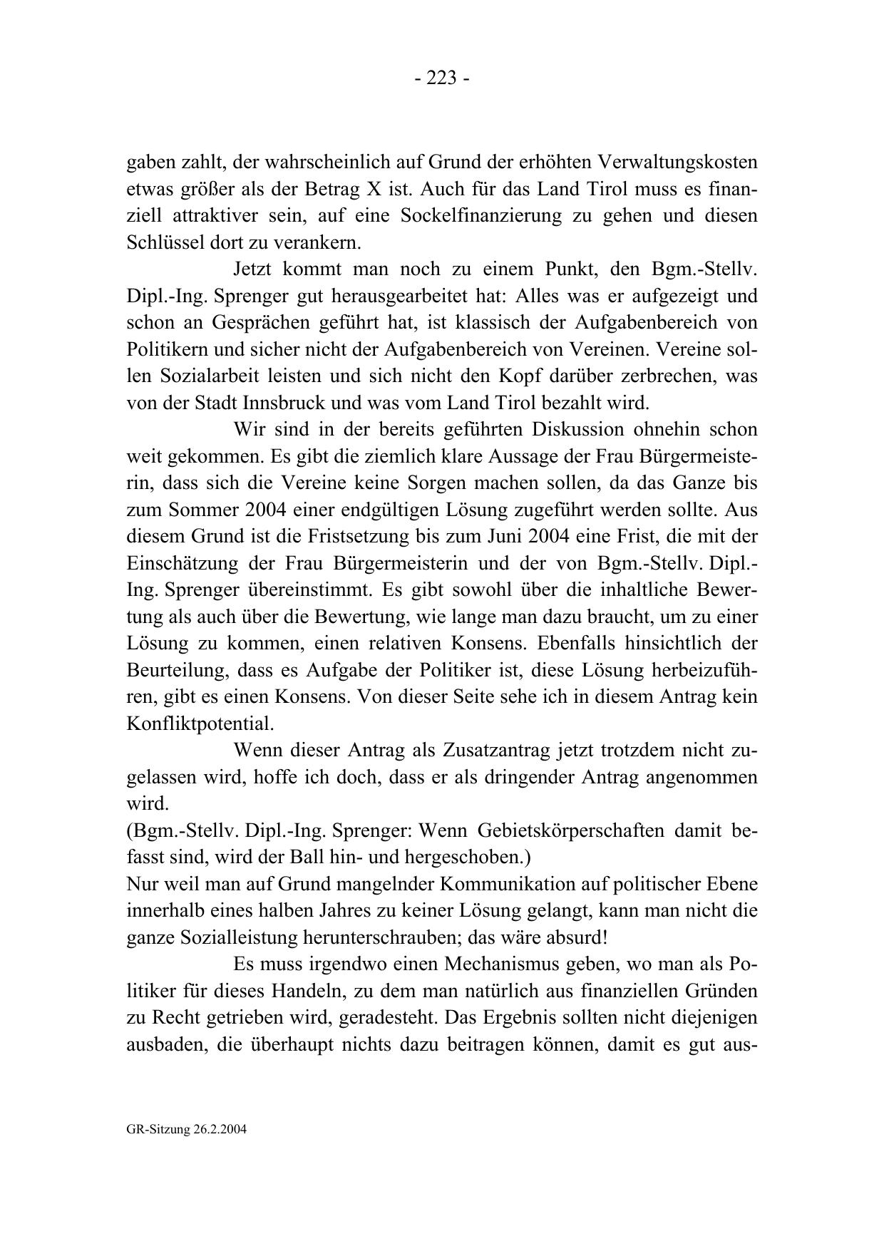 Einschätzung der Frau Bürgermeisterin und der von Bgm.-Stellv. Dipl.Ing. Sprenger übereinstimmt. Es gibt sowohl über die inhaltliche Bewertung als auch über die Bewertung, wie lange man dazu braucht, um zu einer