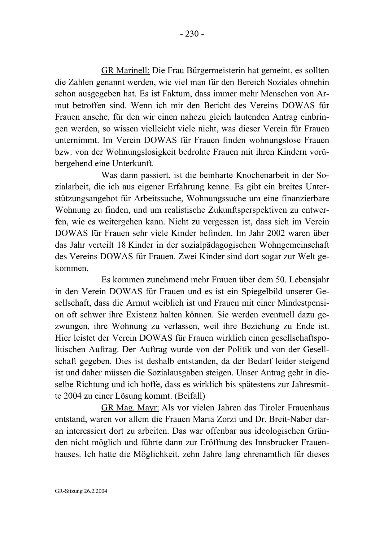GR Mag. Mayr: Als vor vielen Jahren das Tiroler Frauenhaus
