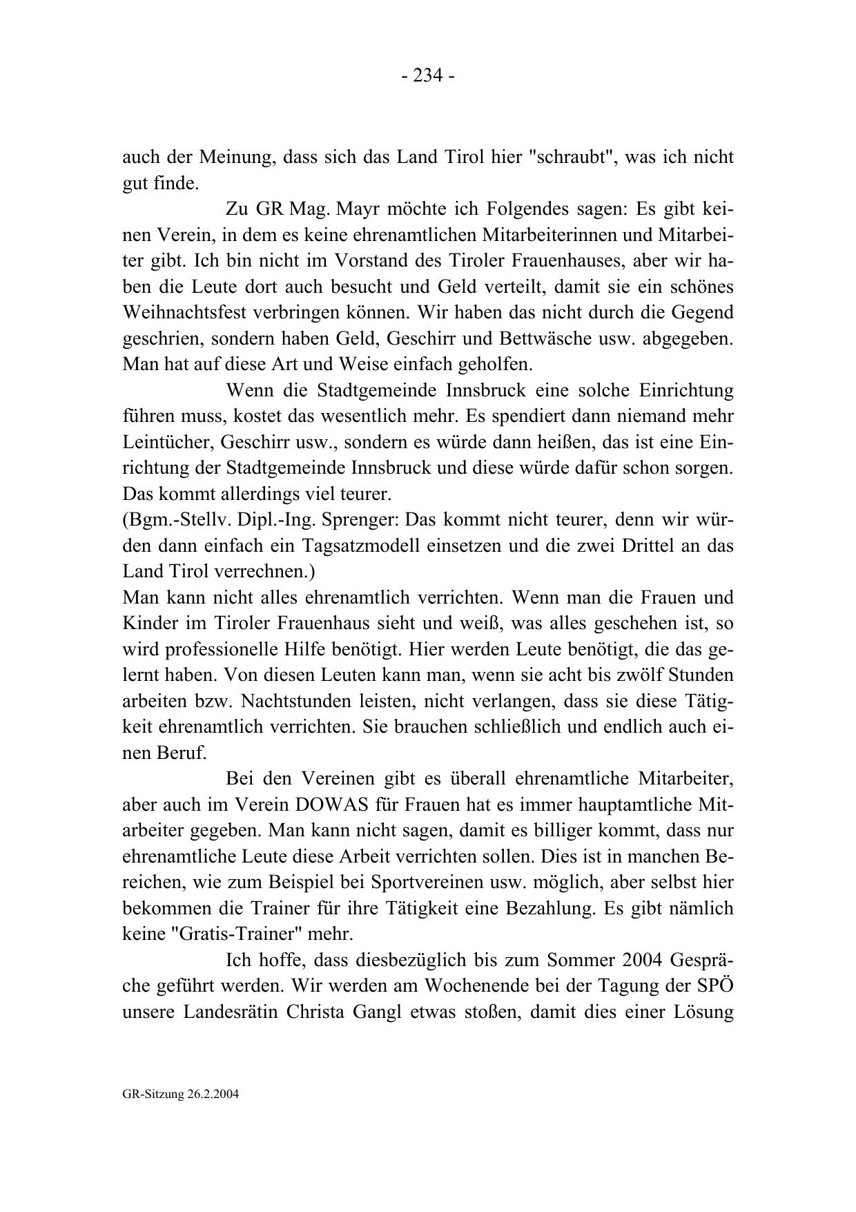 Zu GR Mag. Mayr möchte ich Folgendes sagen: Es gibt keinen Verein, in dem es keine ehrenamtlichen Mitarbeiterinnen und Mitarbeiter gibt. Ich bin nicht im Vorstand des Tiroler Frauenhauses, aber wir haben die Leute dort auch besucht und Geld verteilt, damit sie ein schönes