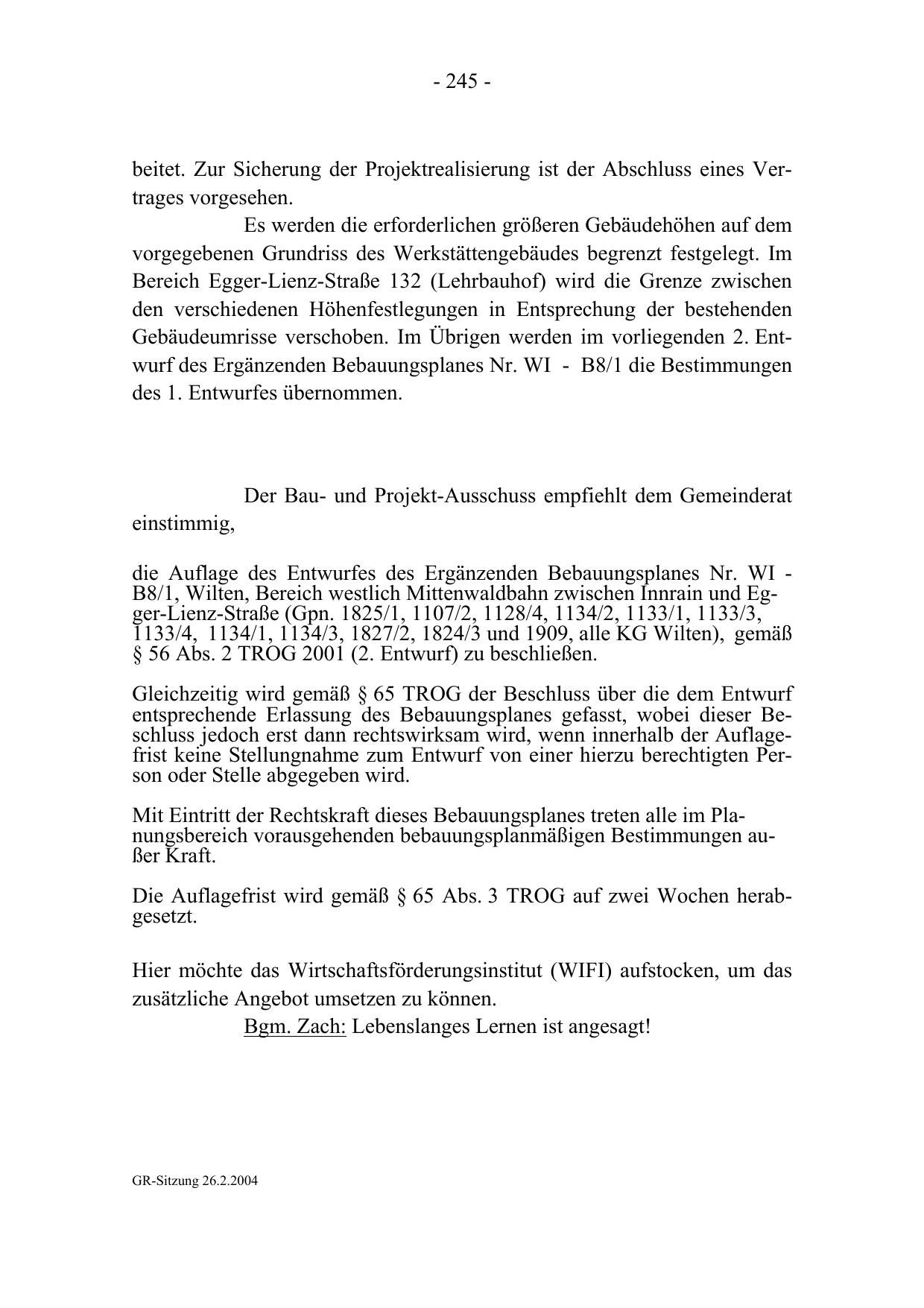 Gleichzeitig wird gemäß § 65 TROG der Beschluss über die dem Entwurf