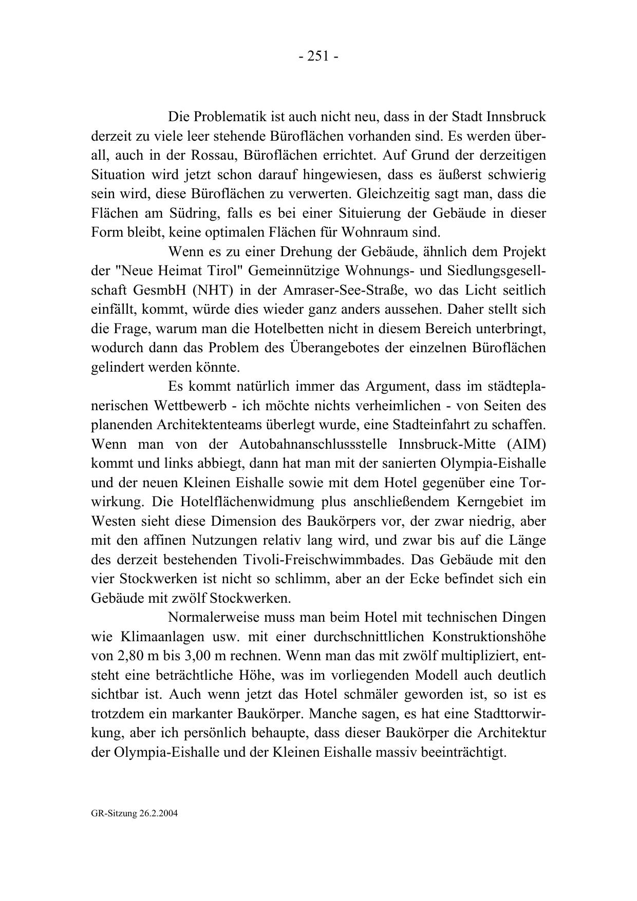 derzeit zu viele leer stehende Büroflächen vorhanden sind. Es werden überall, auch in der Rossau, Büroflächen errichtet. Auf Grund der derzeitigen