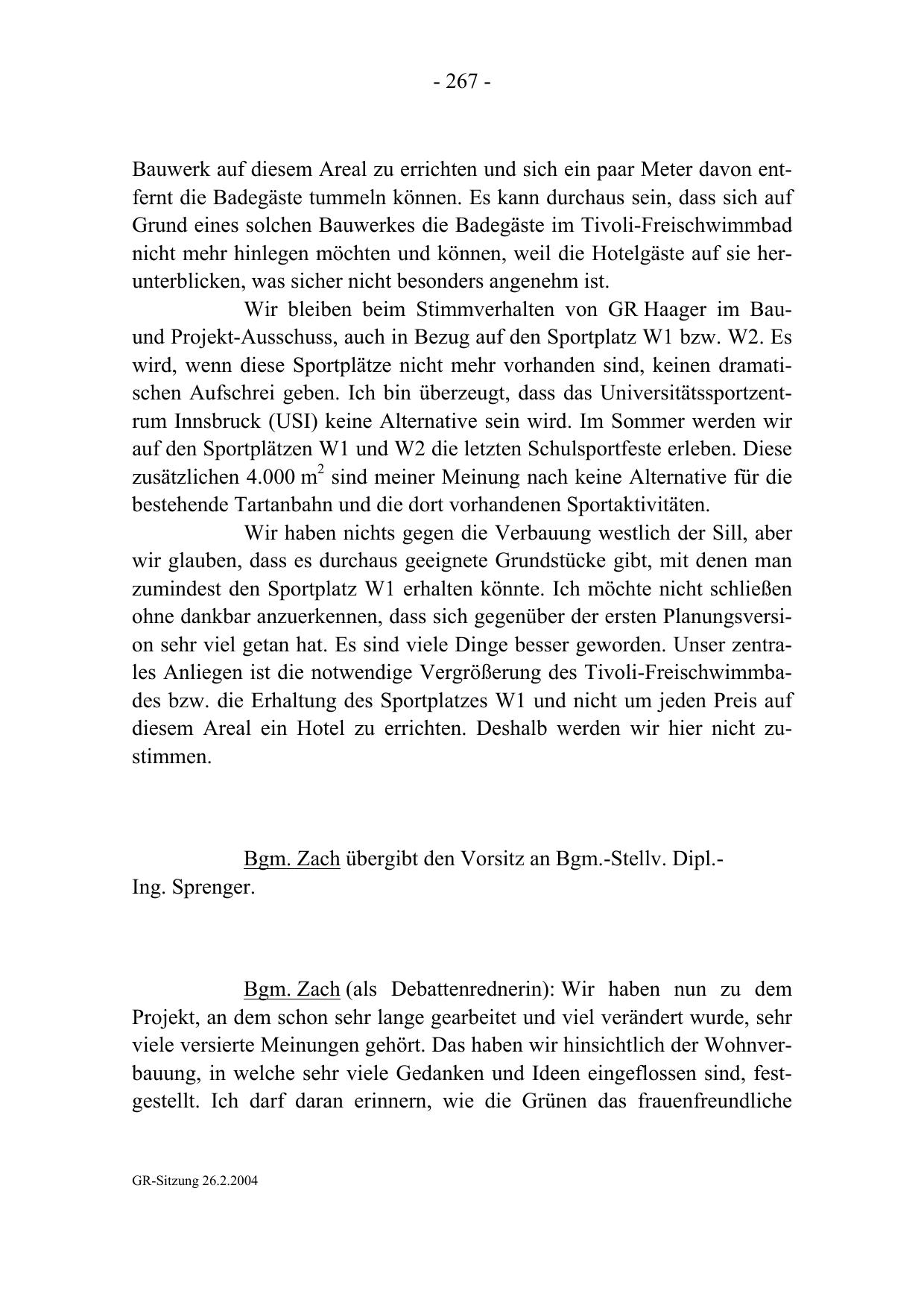 Bgm. Zach (als Debattenrednerin): Wir haben nun zu dem