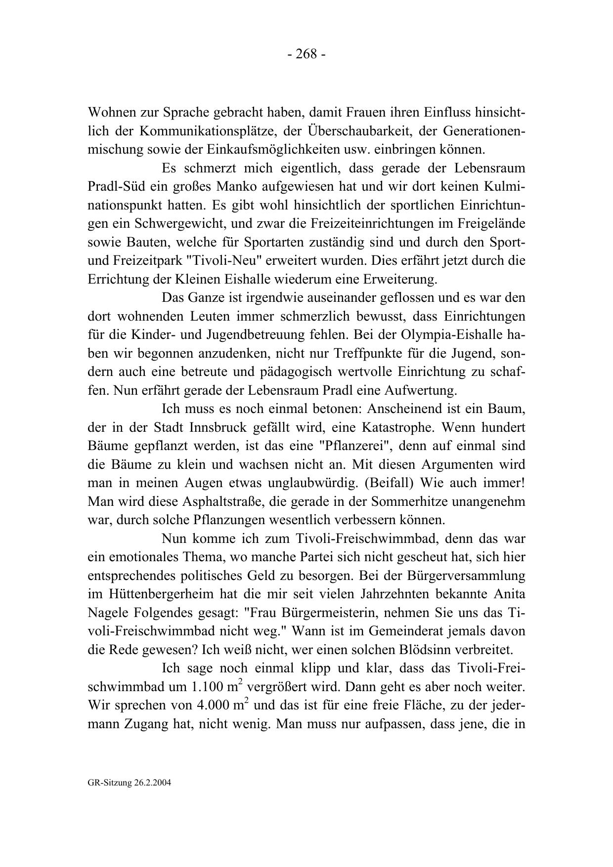 Nagele Folgendes gesagt: "Frau Bürgermeisterin, nehmen Sie uns das Tivoli-Freischwimmbad nicht weg." Wann ist im Gemeinderat jemals davon