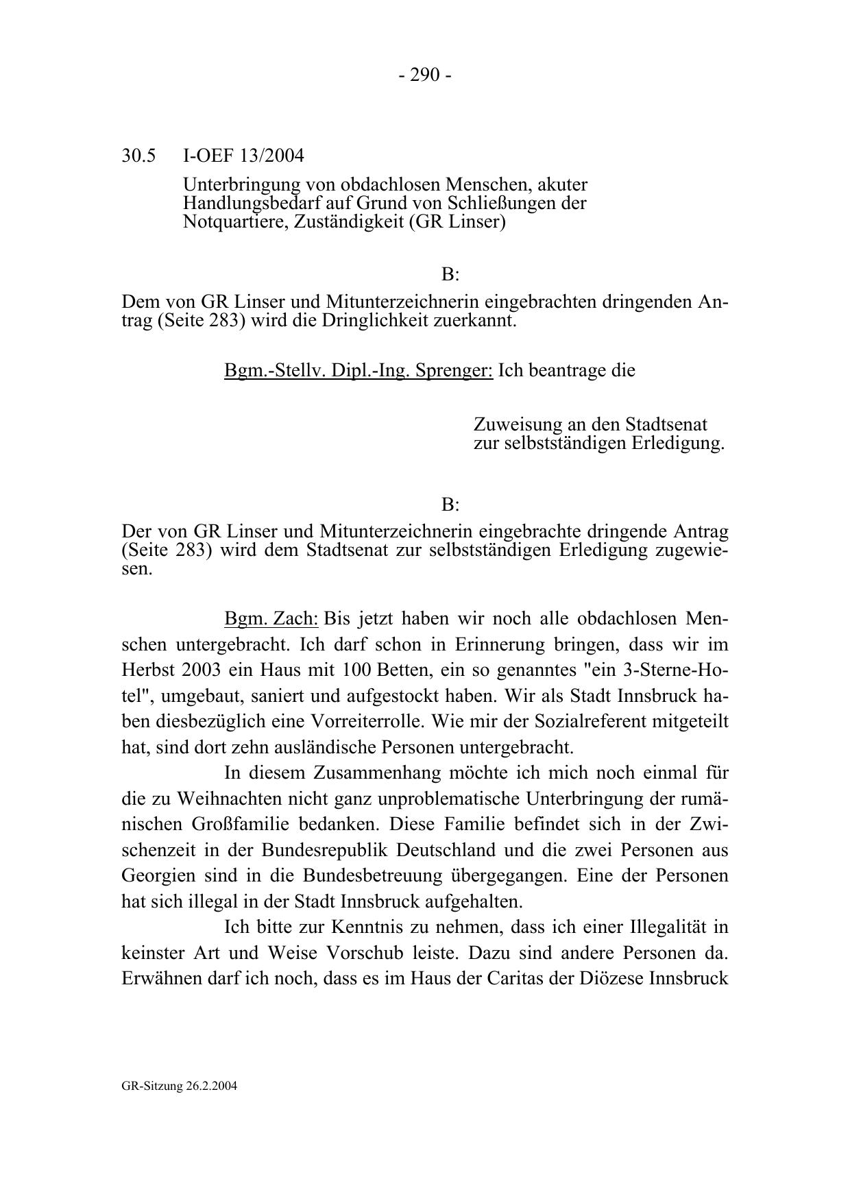 (Seite 283) wird dem Stadtsenat zur selbstständigen Erledigung zugewiesen.