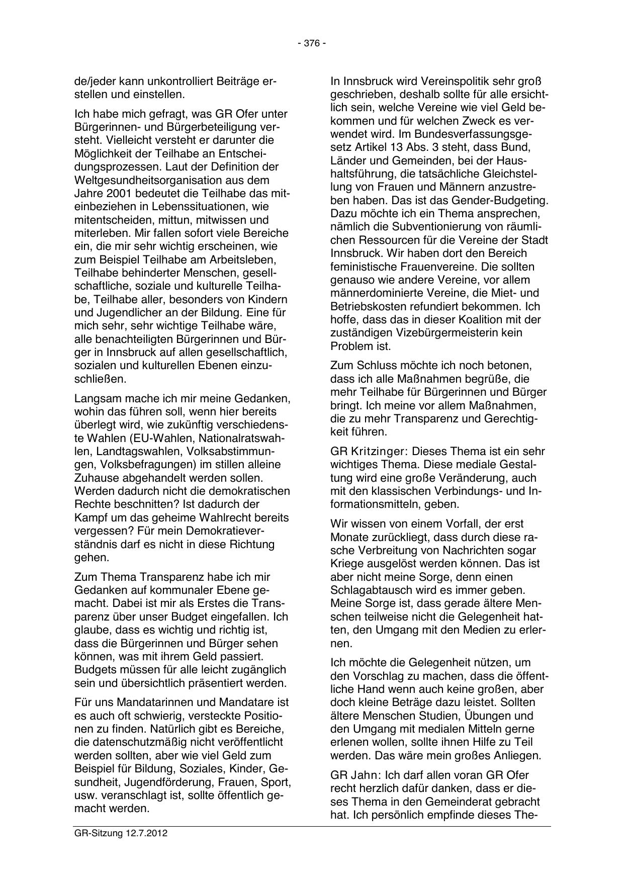 Gedanken auf kommunaler Ebene gemacht. Dabei ist mir als Erstes die Transparenz über unser Budget eingefallen. Ich
