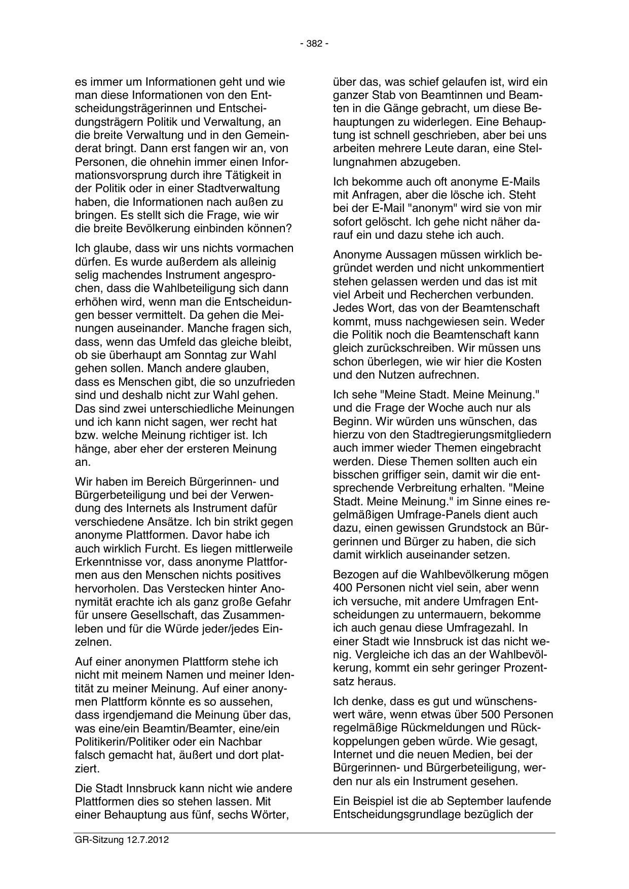 einer Stadt wie Innsbruck ist das nicht wenig. Vergleiche ich das an der Wahlbevölkerung, kommt ein sehr geringer Prozentsatz heraus.