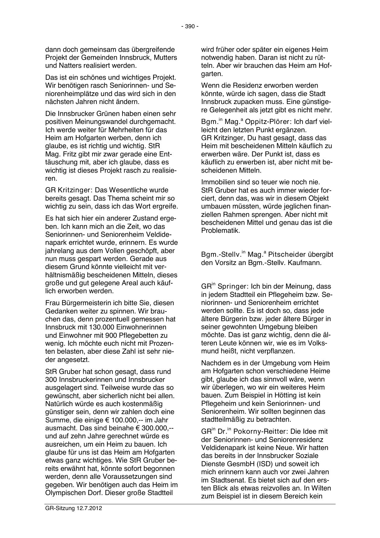 im Stadtsenat. Es bietet sich auf den ersten Blick als etwas reizvolles an. In Wilten