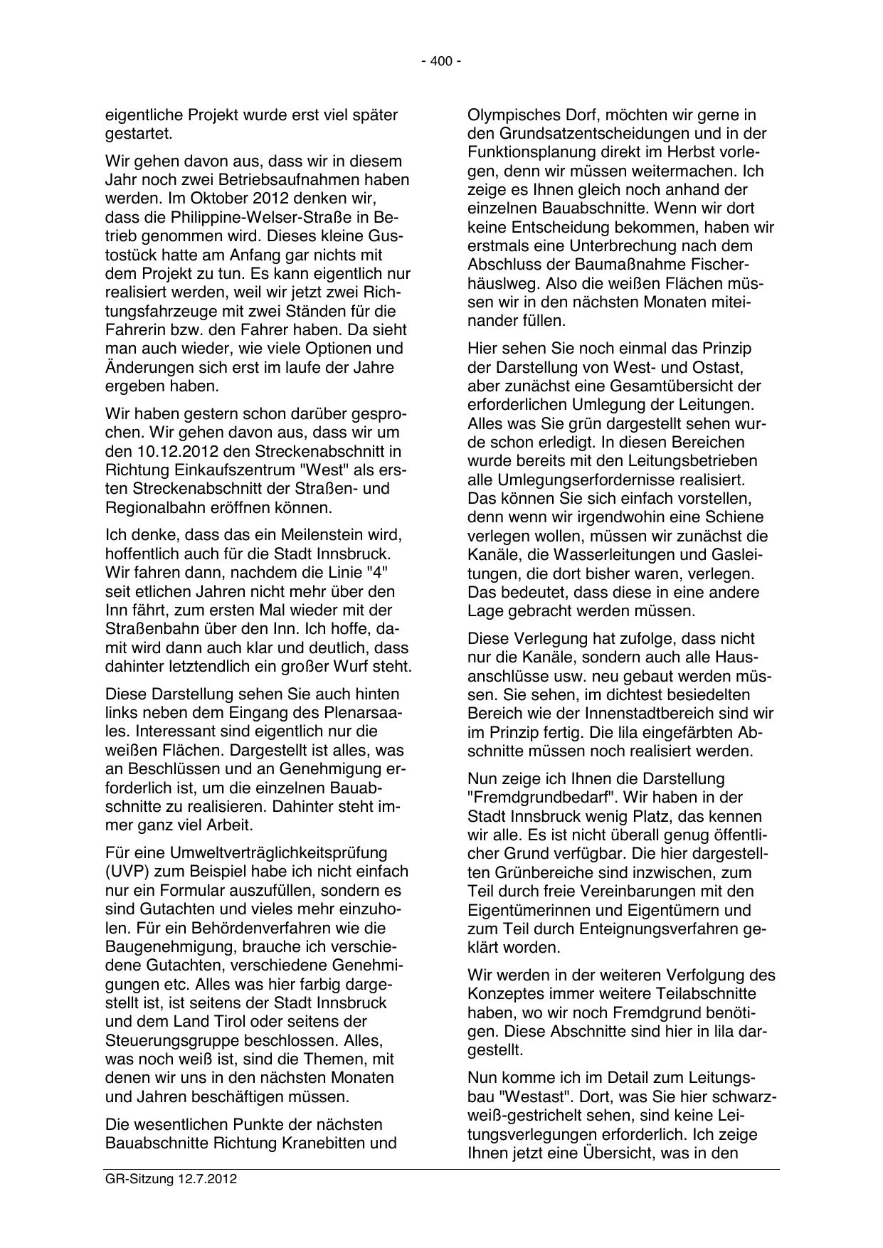 Baugenehmigung, brauche ich verschiedene Gutachten, verschiedene Genehmigungen etc. Alles was hier farbig dargestellt ist, ist seitens der Stadt Innsbruck