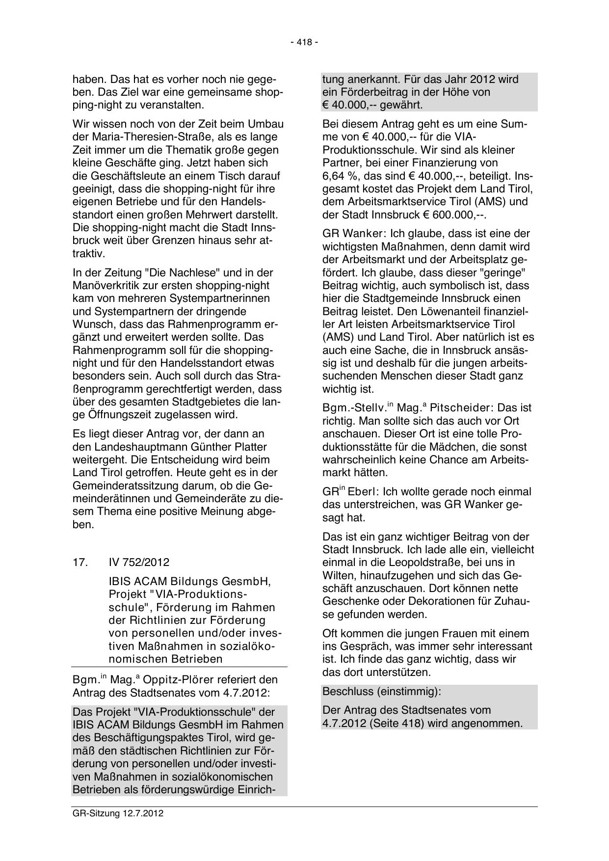 Betrieben als förderungswürdige EinrichGR-Sitzung 12.7.2012