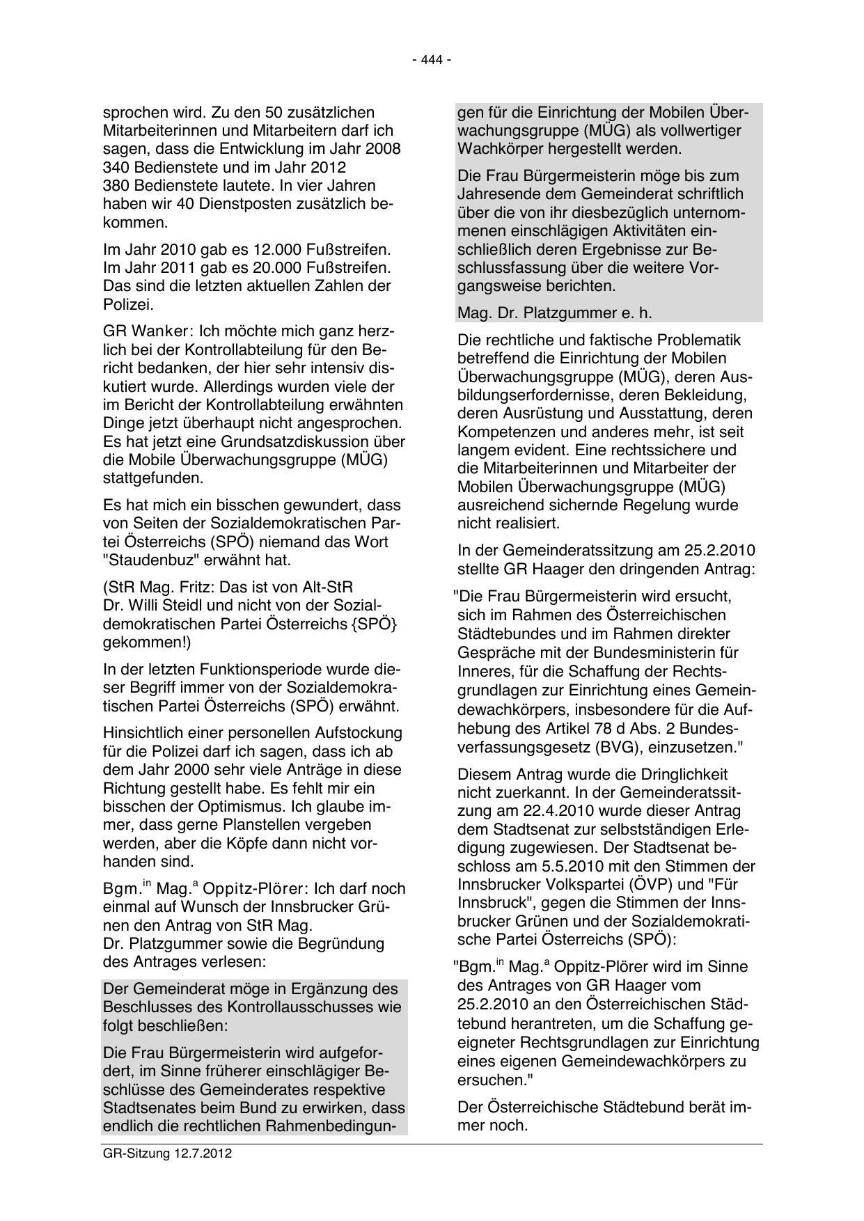 Innsbruck", gegen die Stimmen der Innsbrucker Grünen und der Sozialdemokratische Partei Österreichs (SPÖ):