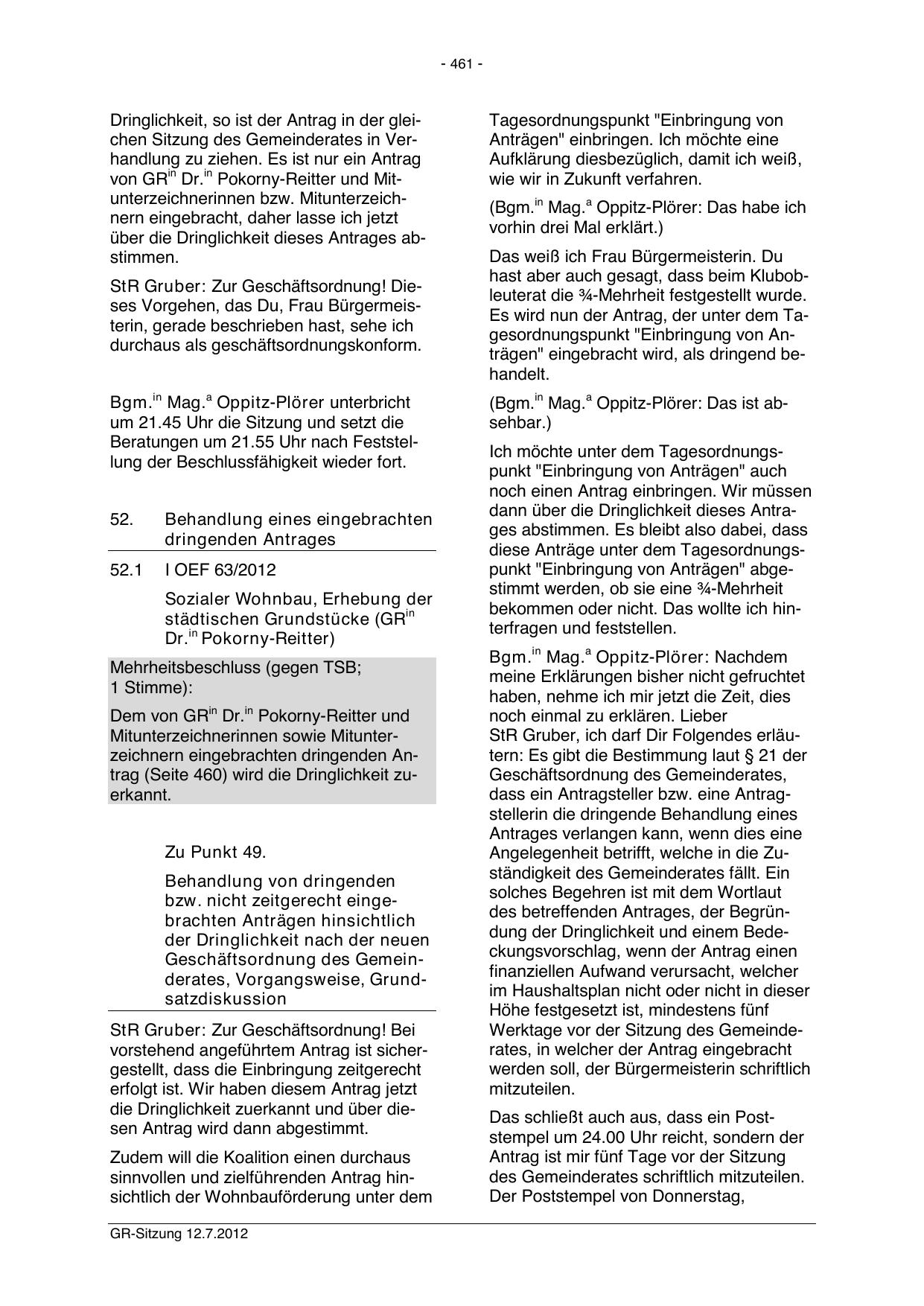 StR Gruber: Zur Geschäftsordnung! Dieses Vorgehen, das Du, Frau Bürgermeisterin, gerade beschrieben hast, sehe ich