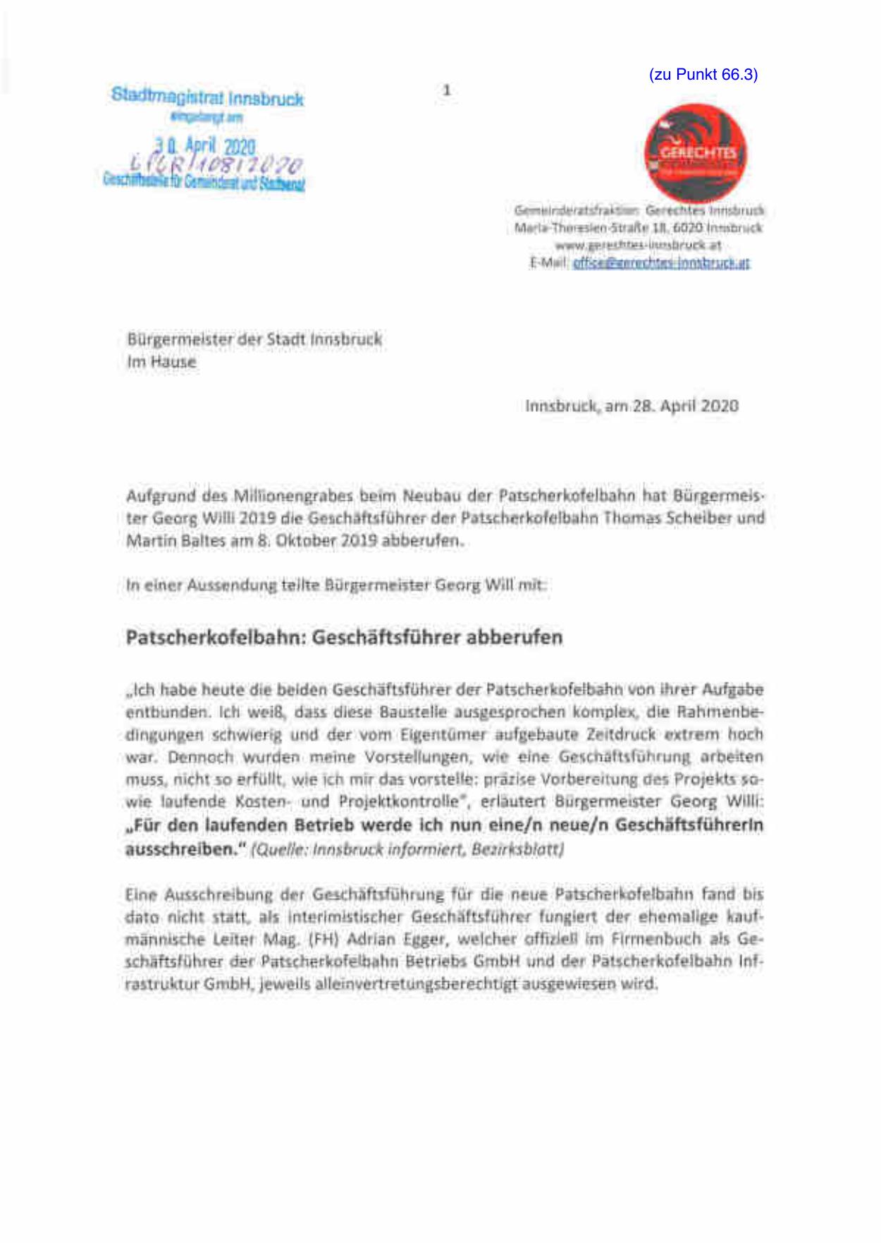 „Ich habe heute die beiden Geschä ftsf ührer der Patscherkofelbahn von ihrer Aufgabe