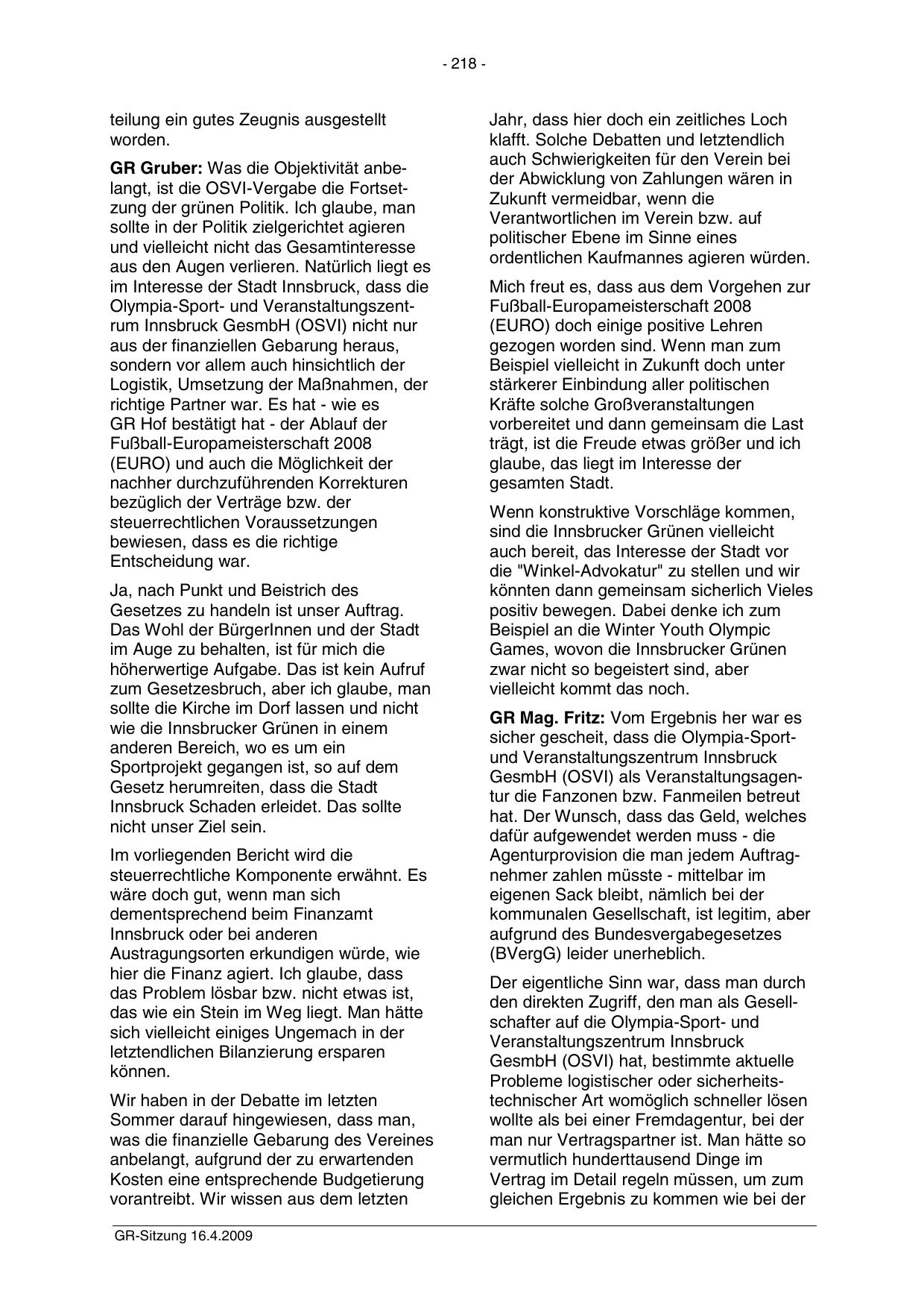 GR Gruber: Was die Objektivität anbelangt, ist die OSVI-Vergabe die Fortsetzung der grünen Politik. Ich glaube, man