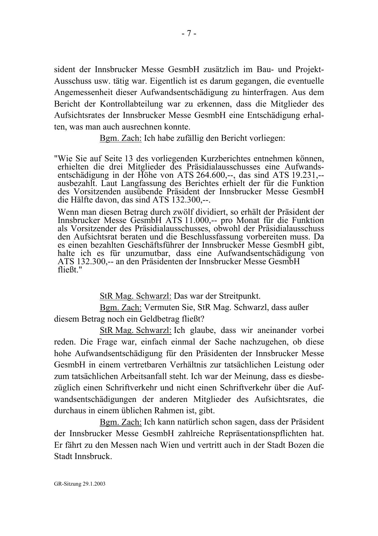 Aufsichtsrates der Innsbrucker Messe GesmbH eine Entschädigung erhalten, was man auch ausrechnen konnte.