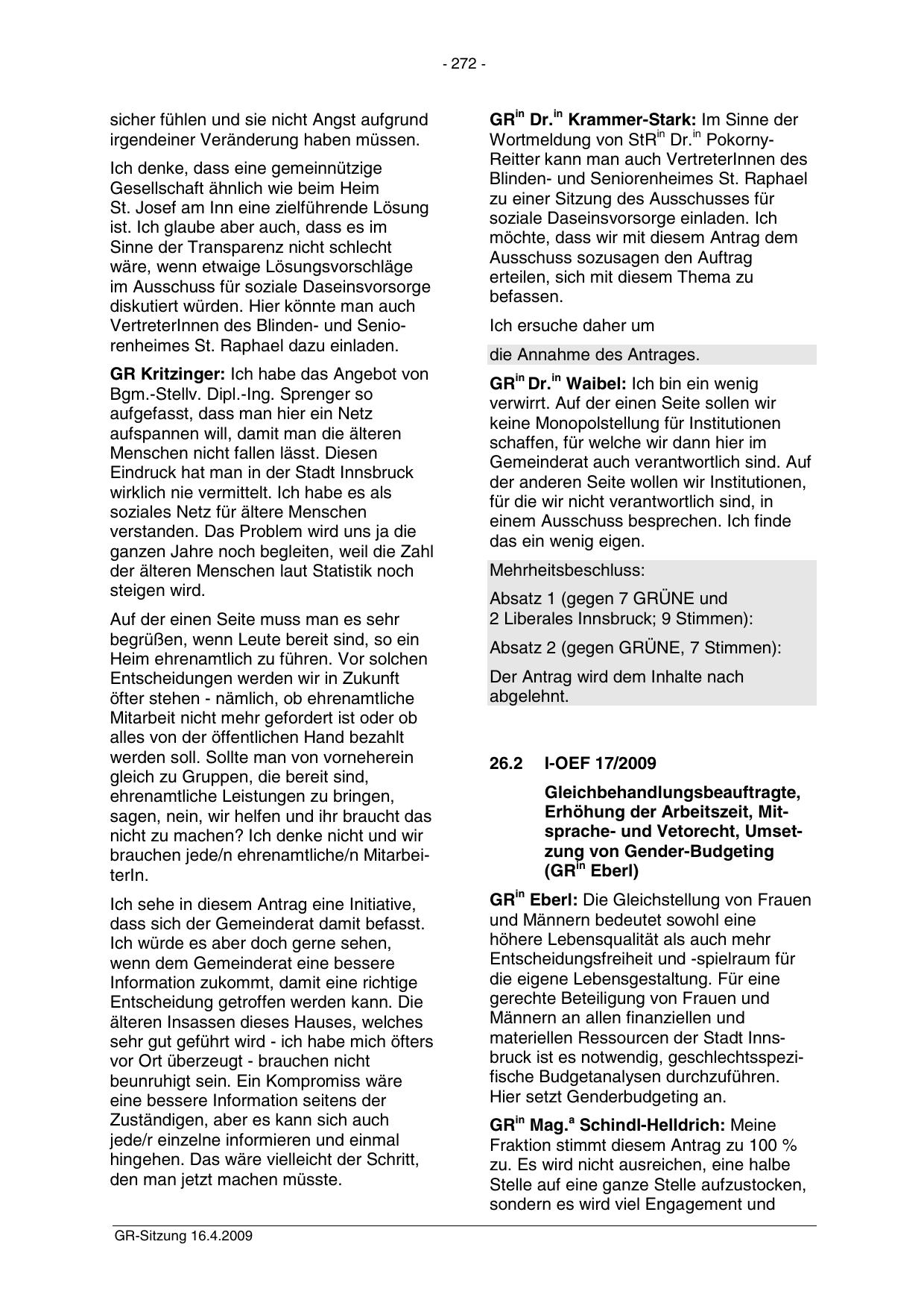 Wortmeldung von StRin Dr.in PokornyReitter kann man auch VertreterInnen des