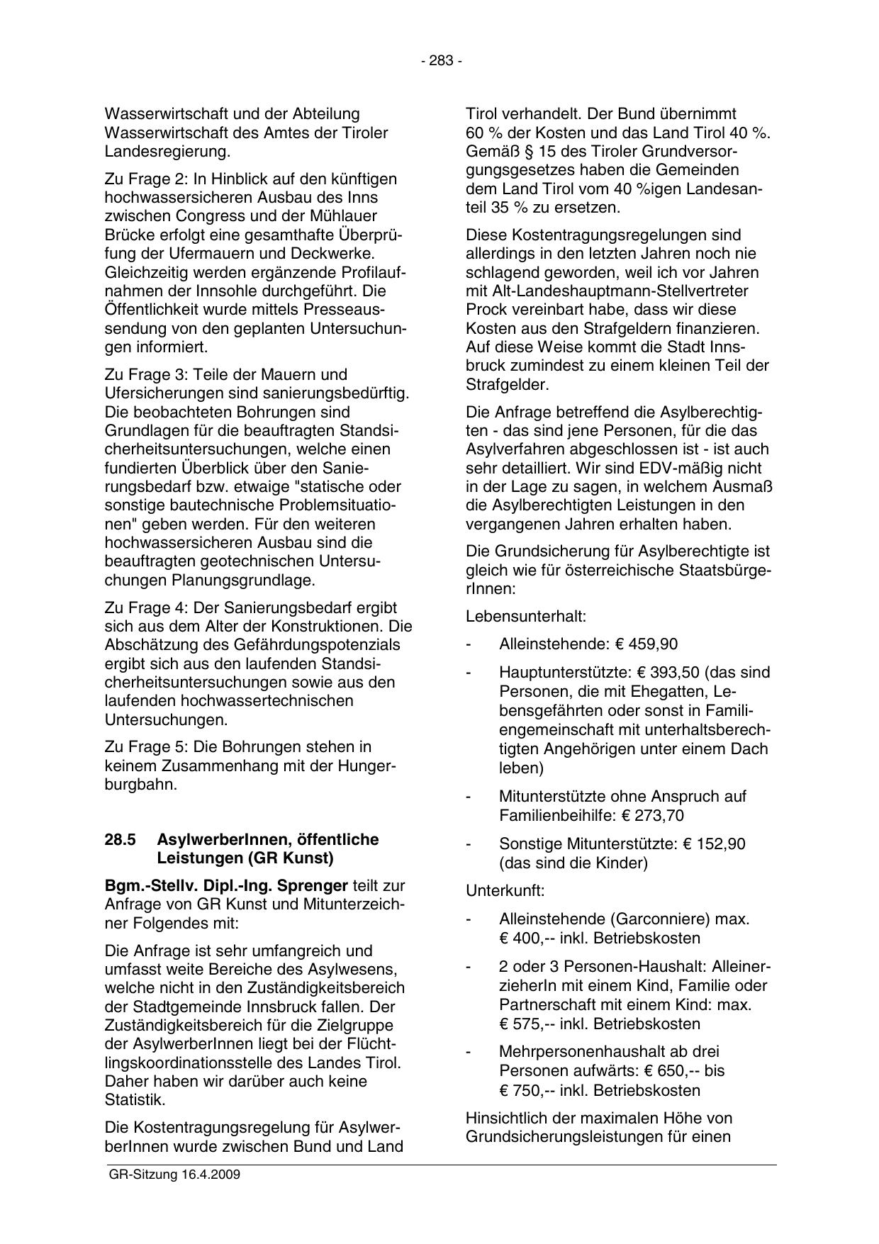 Gemäß § 15 des Tiroler Grundversorgungsgesetzes haben die Gemeinden