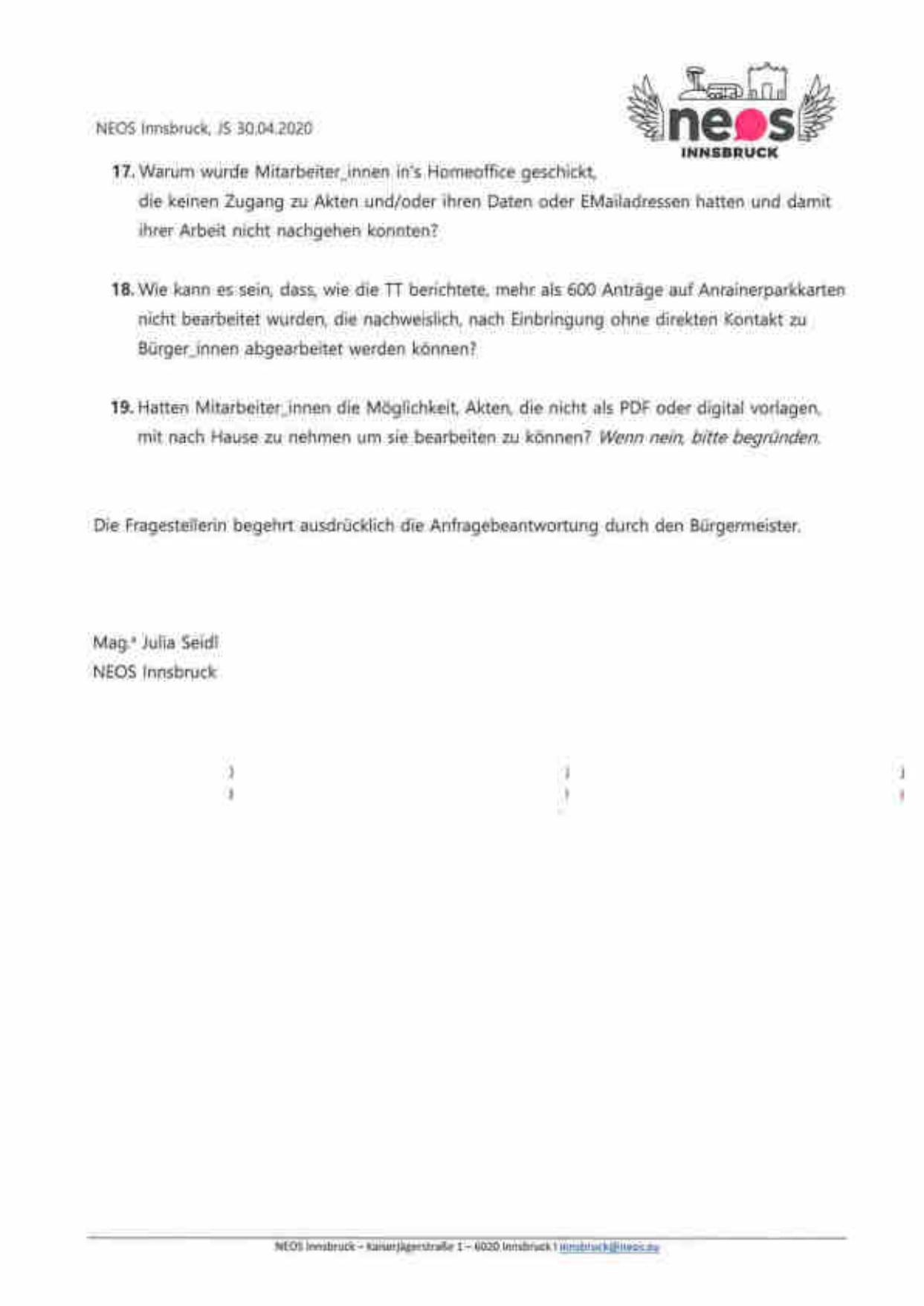 NEOS Innsbruck, JS 30.04.2020