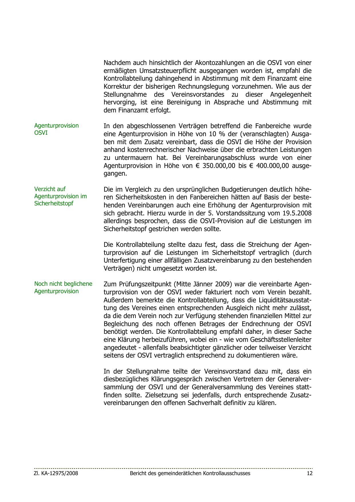 Zum Prüfungszeitpunkt (Mitte Jänner 2009) war die vereinbarte Agenturprovision von der OSVI weder fakturiert noch vom Verein bezahlt.