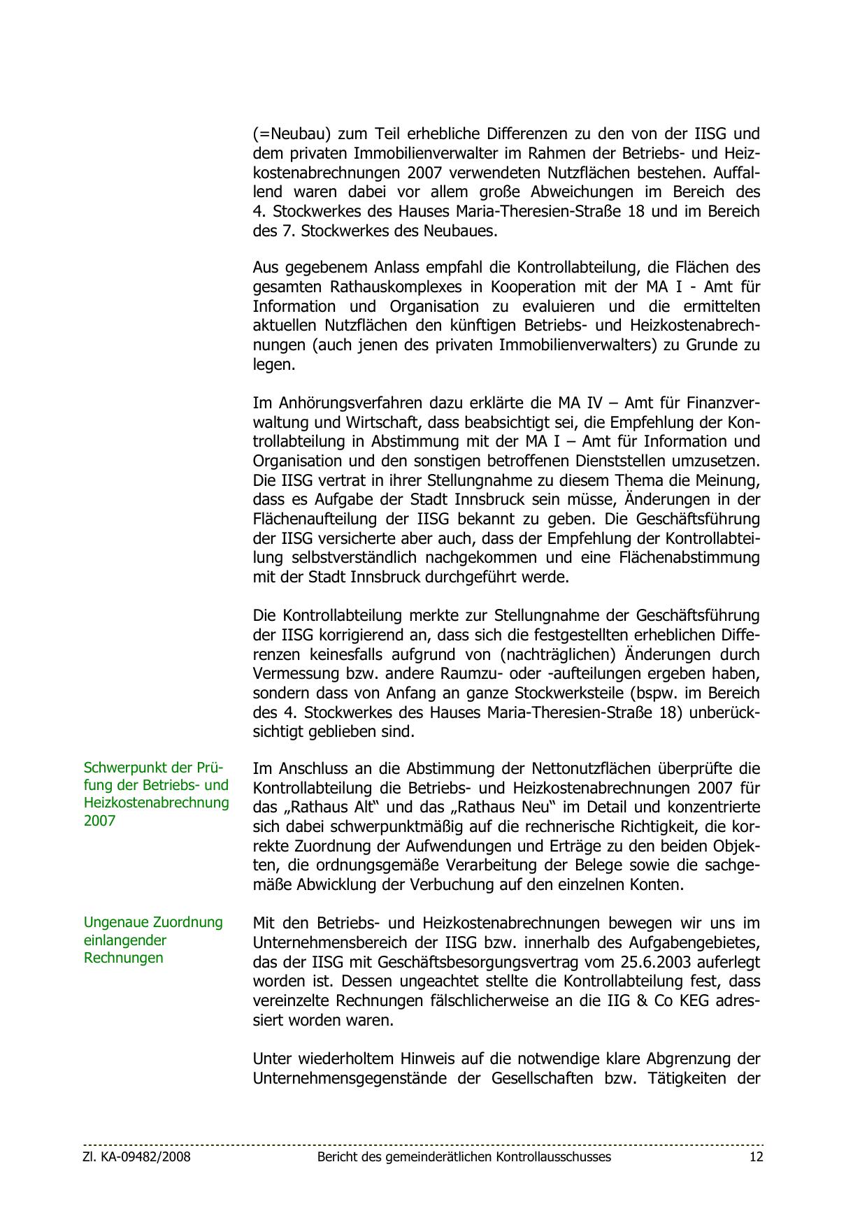 dem privaten Immobilienverwalter im Rahmen der Betriebs- und Heizkostenabrechnungen 2007 verwendeten Nutzflächen bestehen. Auffallend waren dabei vor allem große Abweichungen im Bereich des