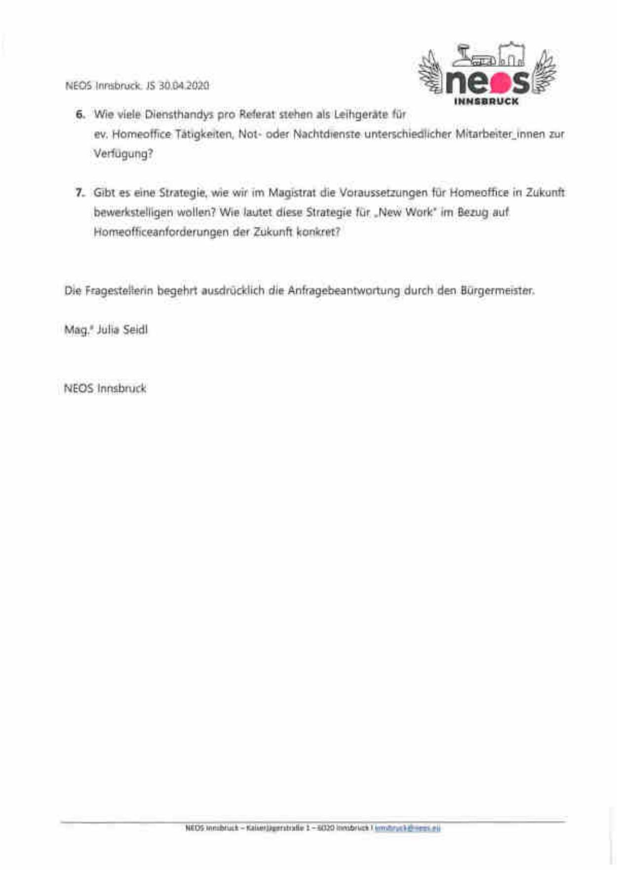 NEOS Innsbruck, JS 30.04.2020