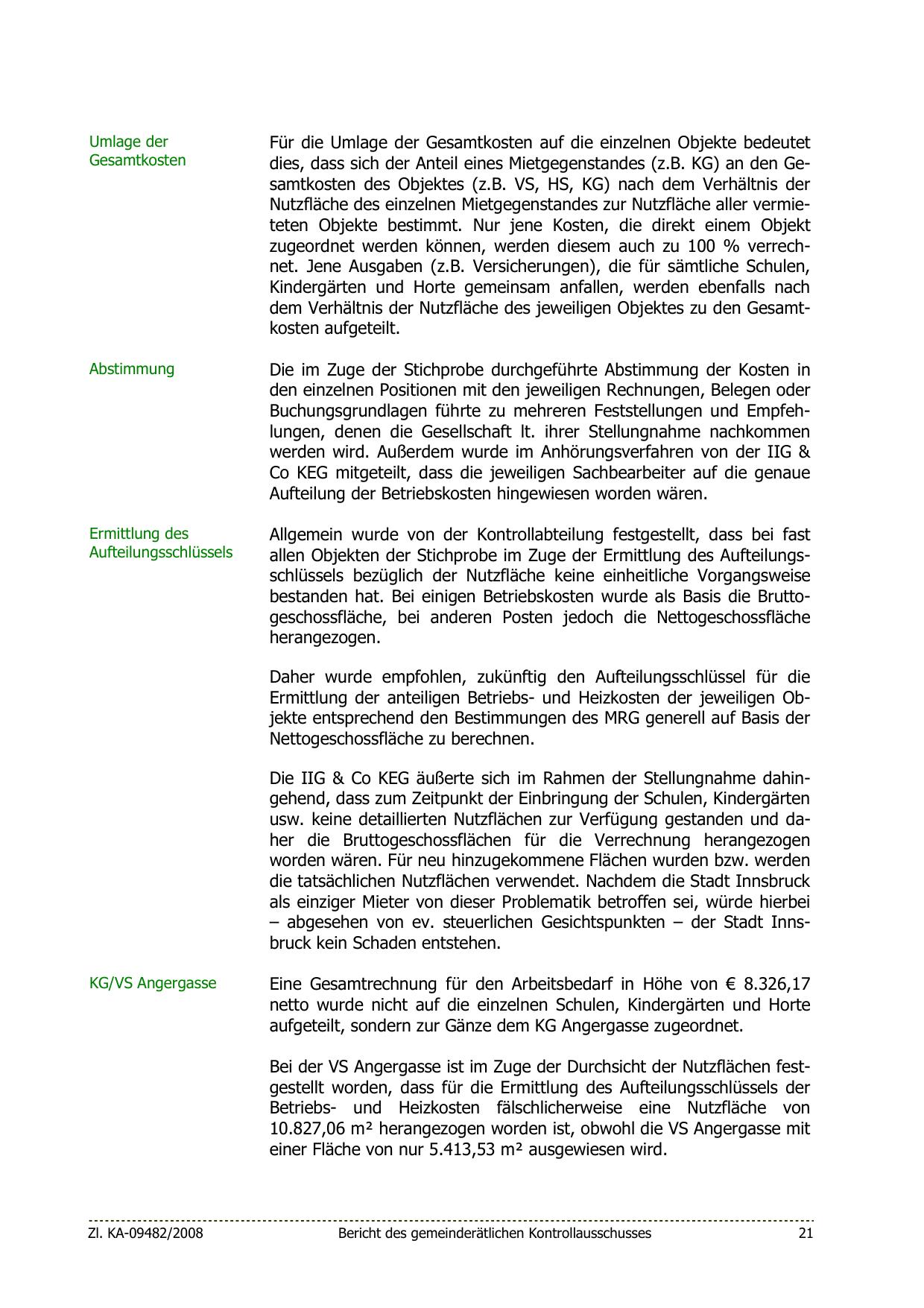 bestanden hat. Bei einigen Betriebskosten wurde als Basis die Bruttogeschossfläche, bei anderen Posten jedoch die Nettogeschossfläche