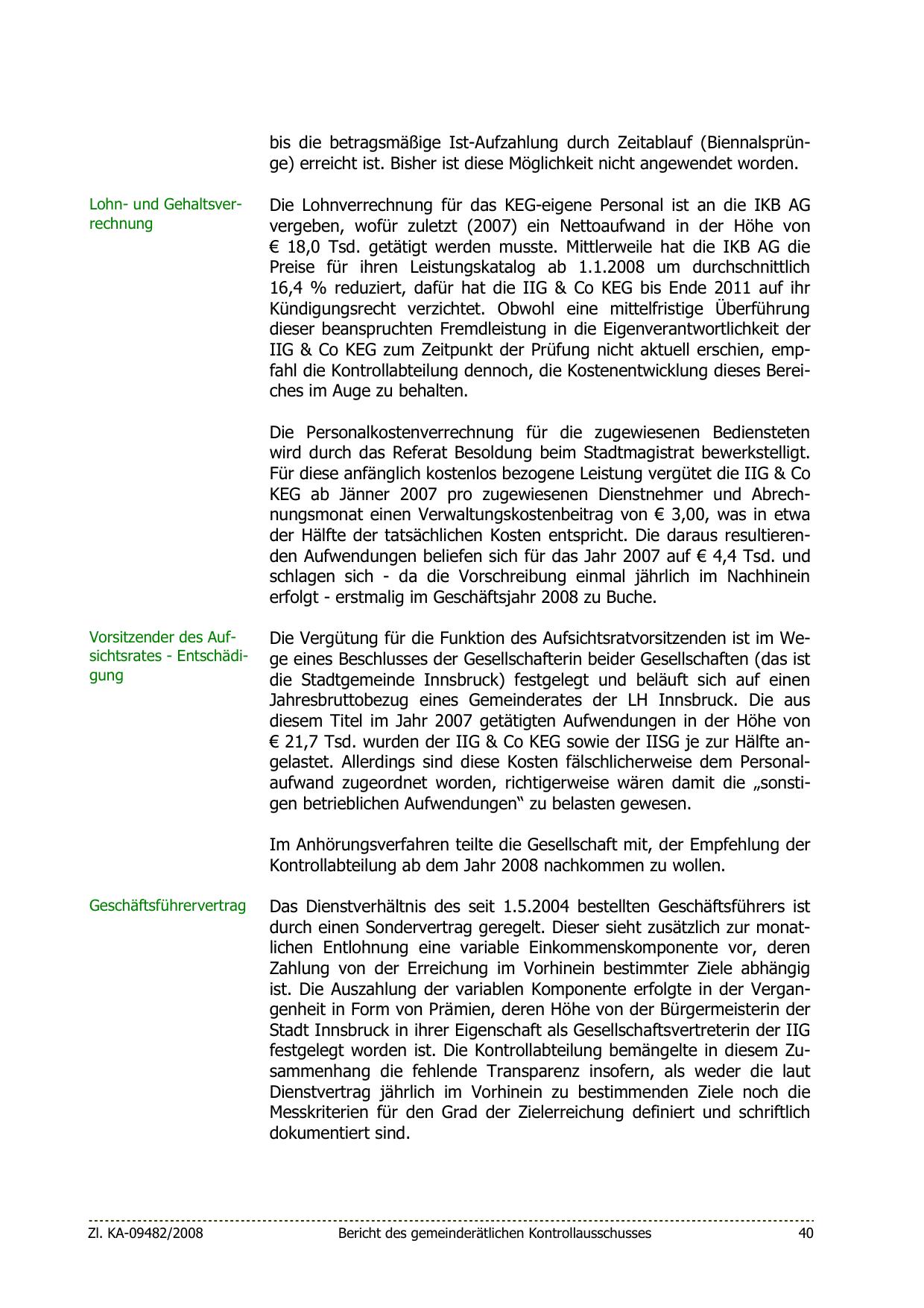 IIG & Co KEG zum Zeitpunkt der Prüfung nicht aktuell erschien, empfahl die Kontrollabteilung dennoch, die Kostenentwicklung dieses Bereiches im Auge zu behalten.