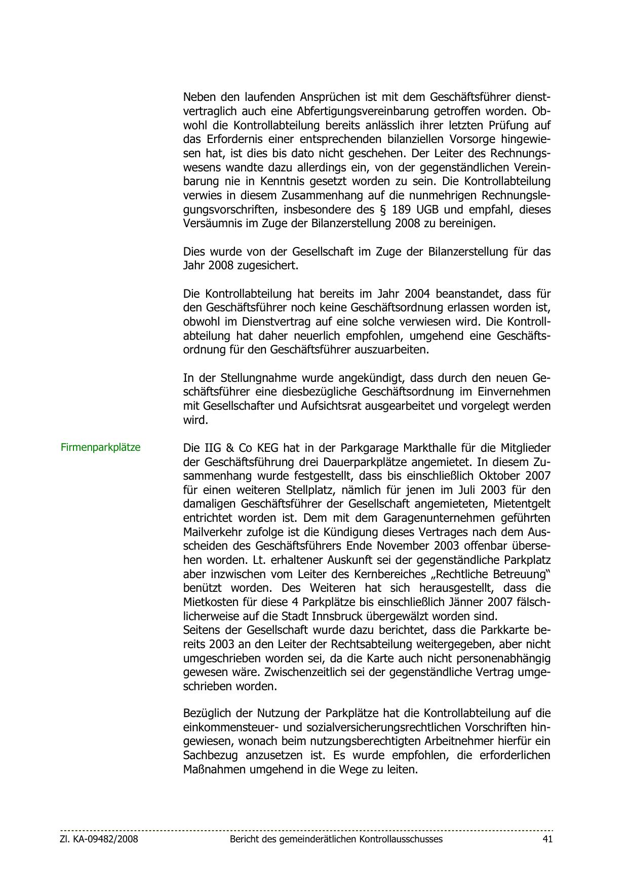 der Geschäftsführung drei Dauerparkplätze angemietet. In diesem Zusammenhang wurde festgestellt, dass bis einschließlich Oktober 2007