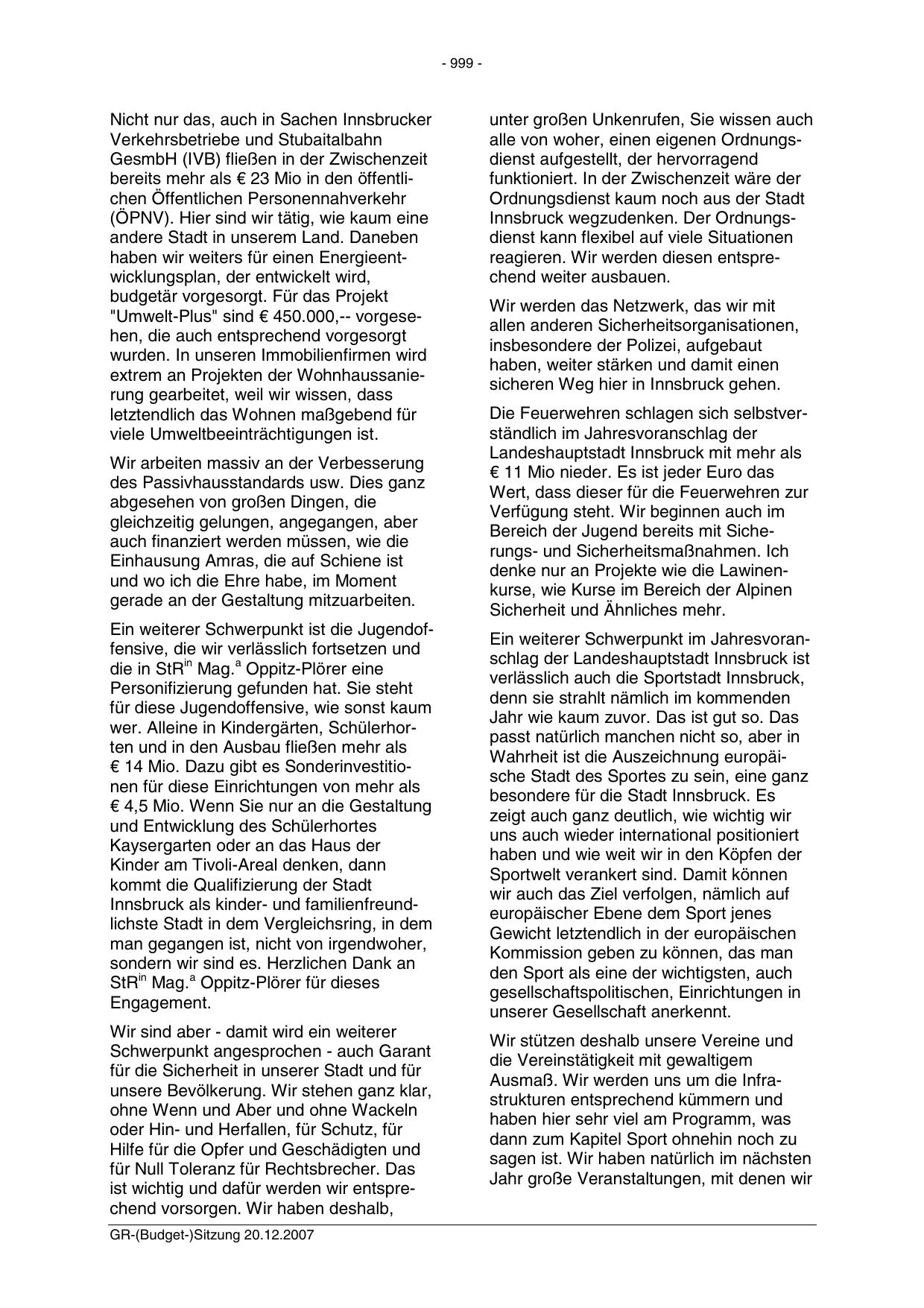 GR-(Budget-)Sitzung 20.12.2007