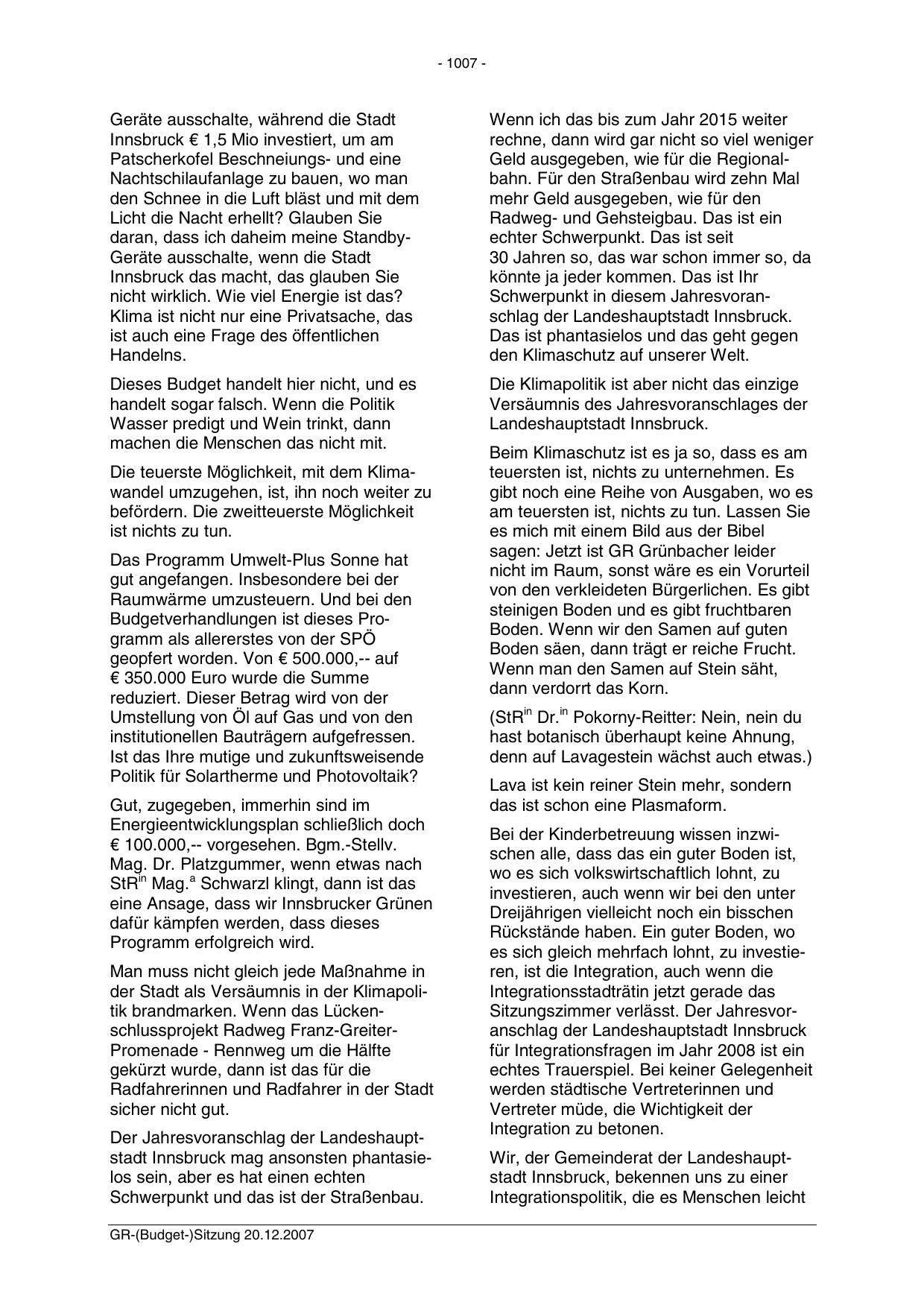GR-(Budget-)Sitzung 20.12.2007