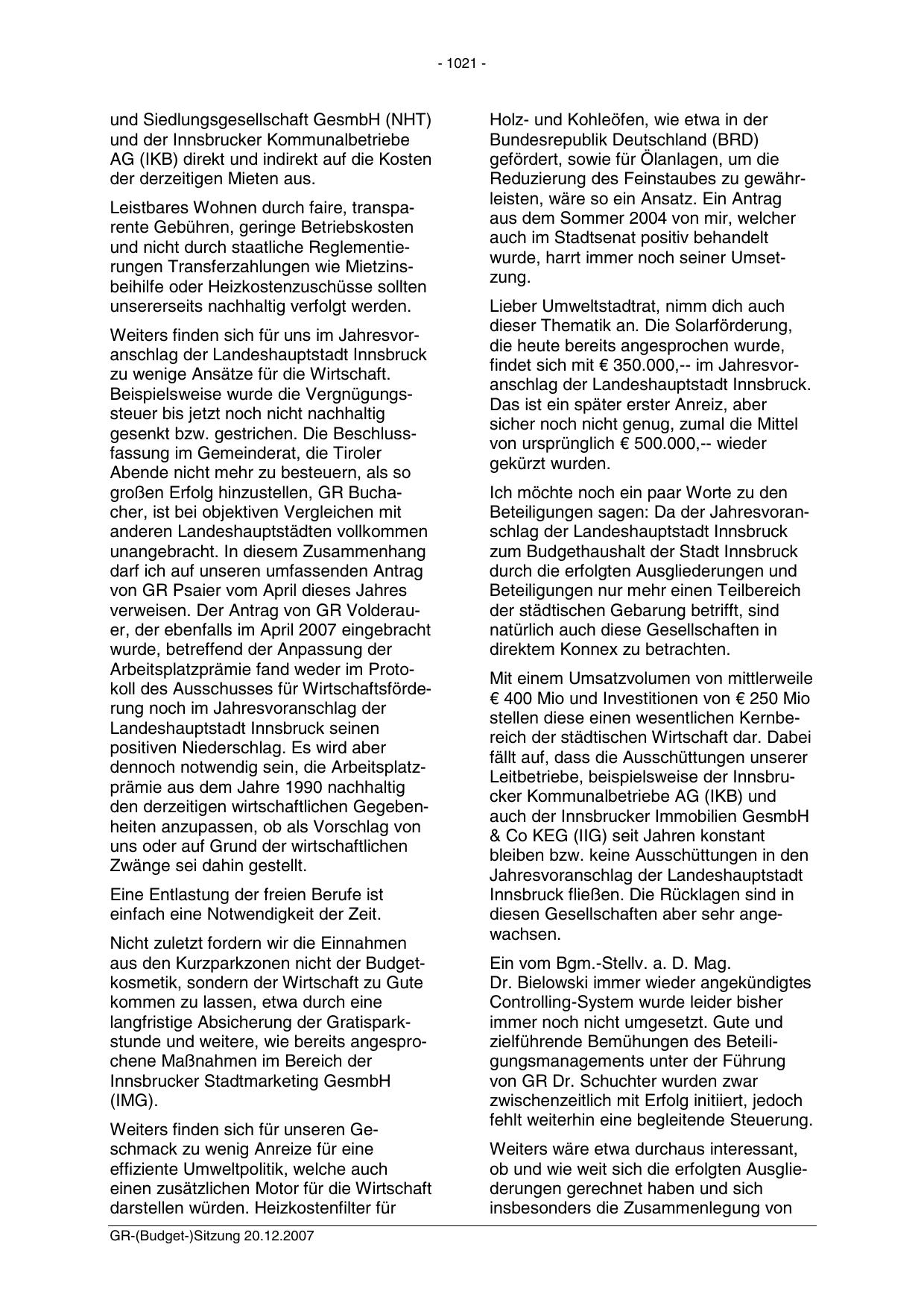 Weiters finden sich für uns im Jahresvoranschlag der Landeshauptstadt Innsbruck