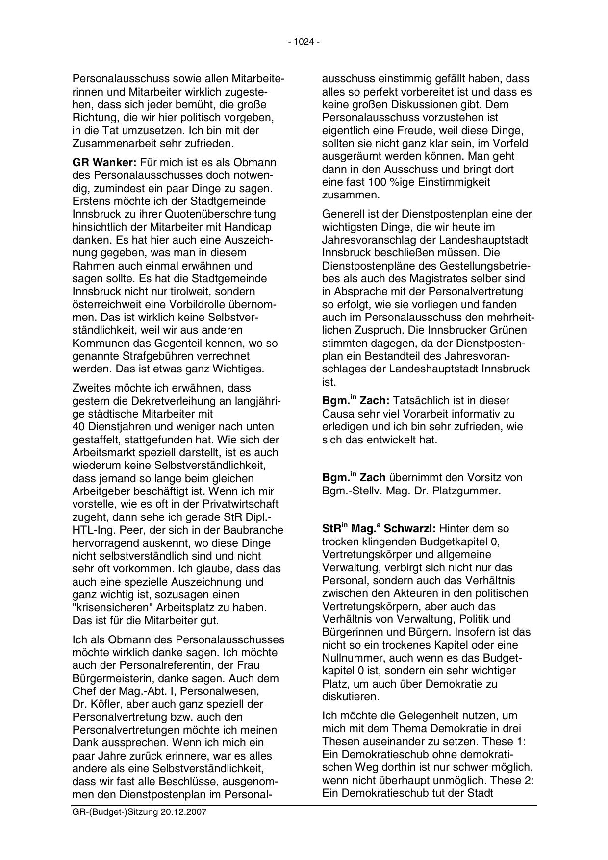 dass wir fast alle Beschlüsse, ausgenommen den Dienstpostenplan im PersonalGR-(Budget-)Sitzung 20.12.2007