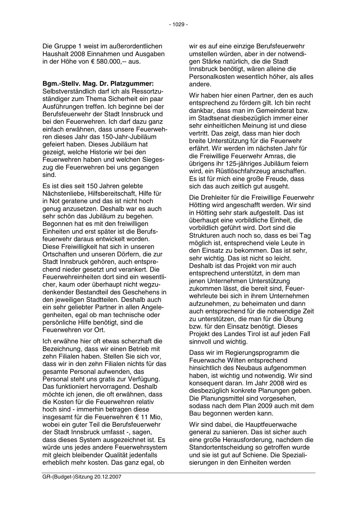 Bgm.-Stellv. Mag. Dr. Platzgummer: