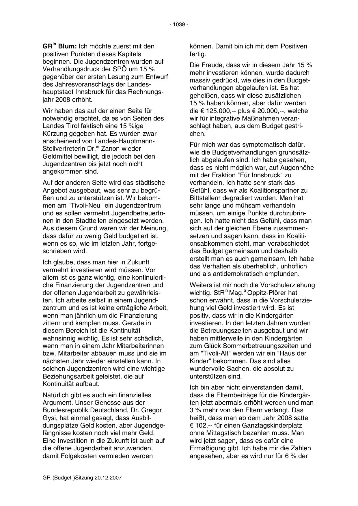 des Jahresvoranschlags der Landeshauptstadt Innsbruck für das Rechnungsjahr 2008 erhöht.