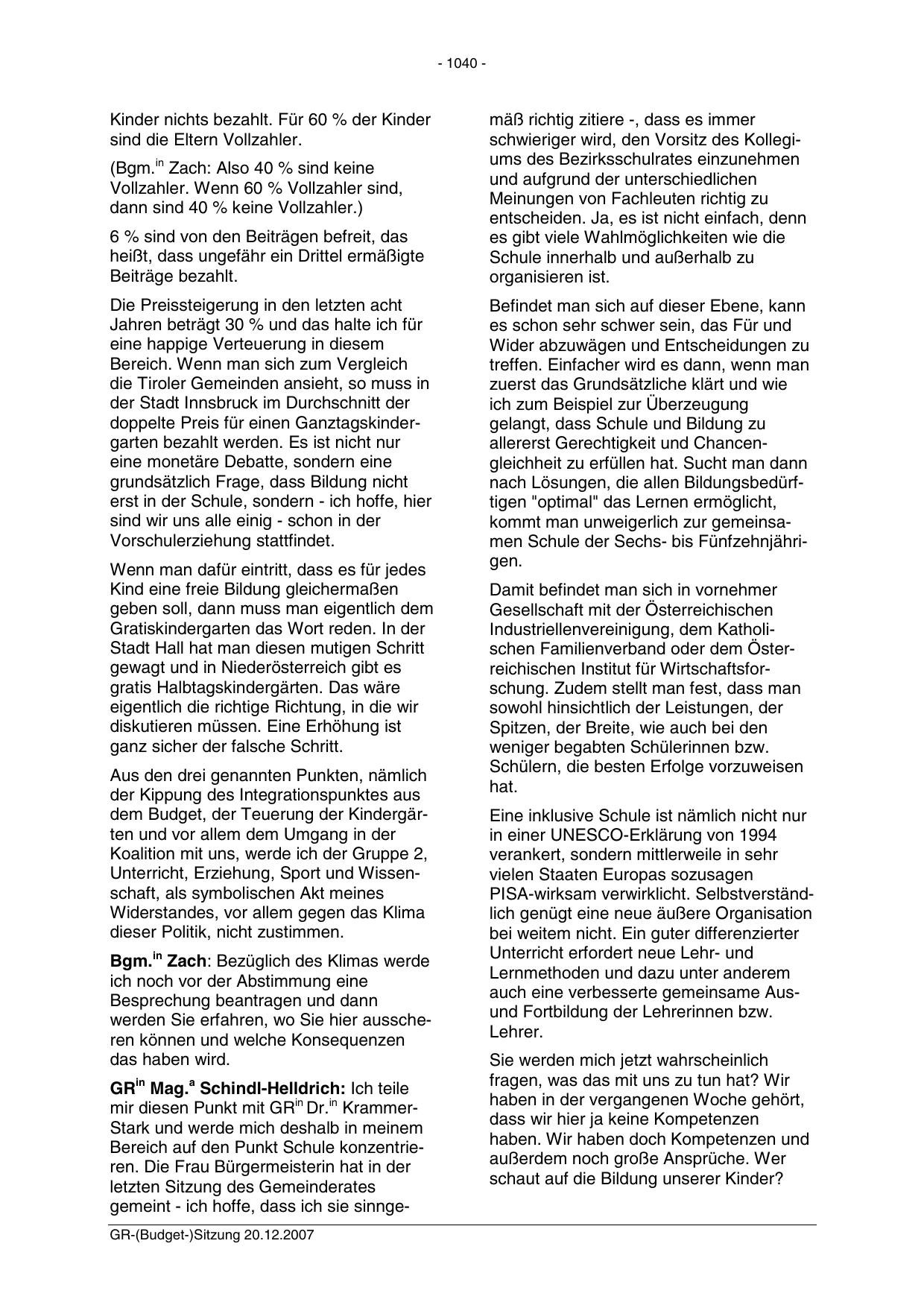 gemeint - ich hoffe, dass ich sie sinngeGR-(Budget-)Sitzung 20.12.2007