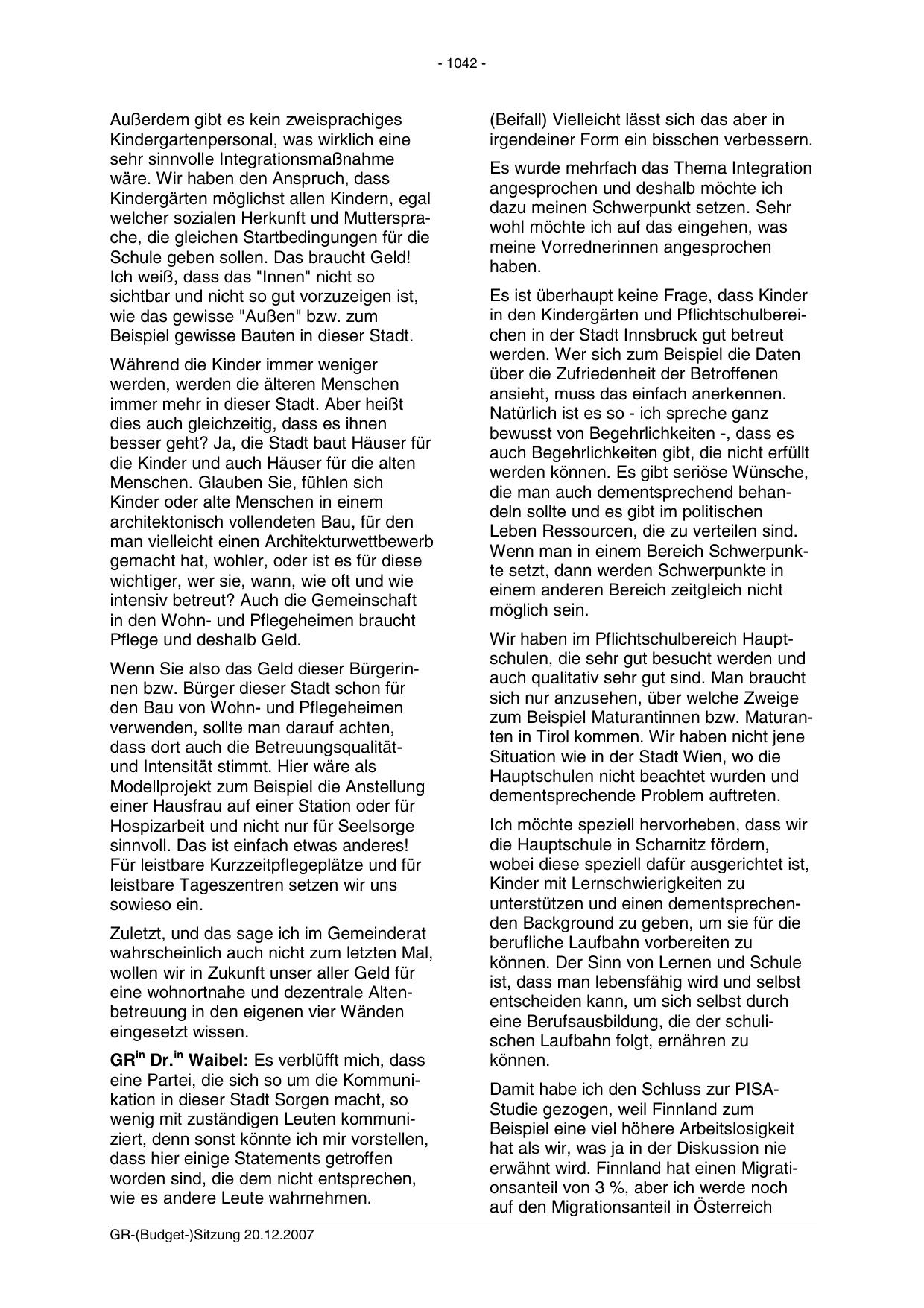 GR-(Budget-)Sitzung 20.12.2007