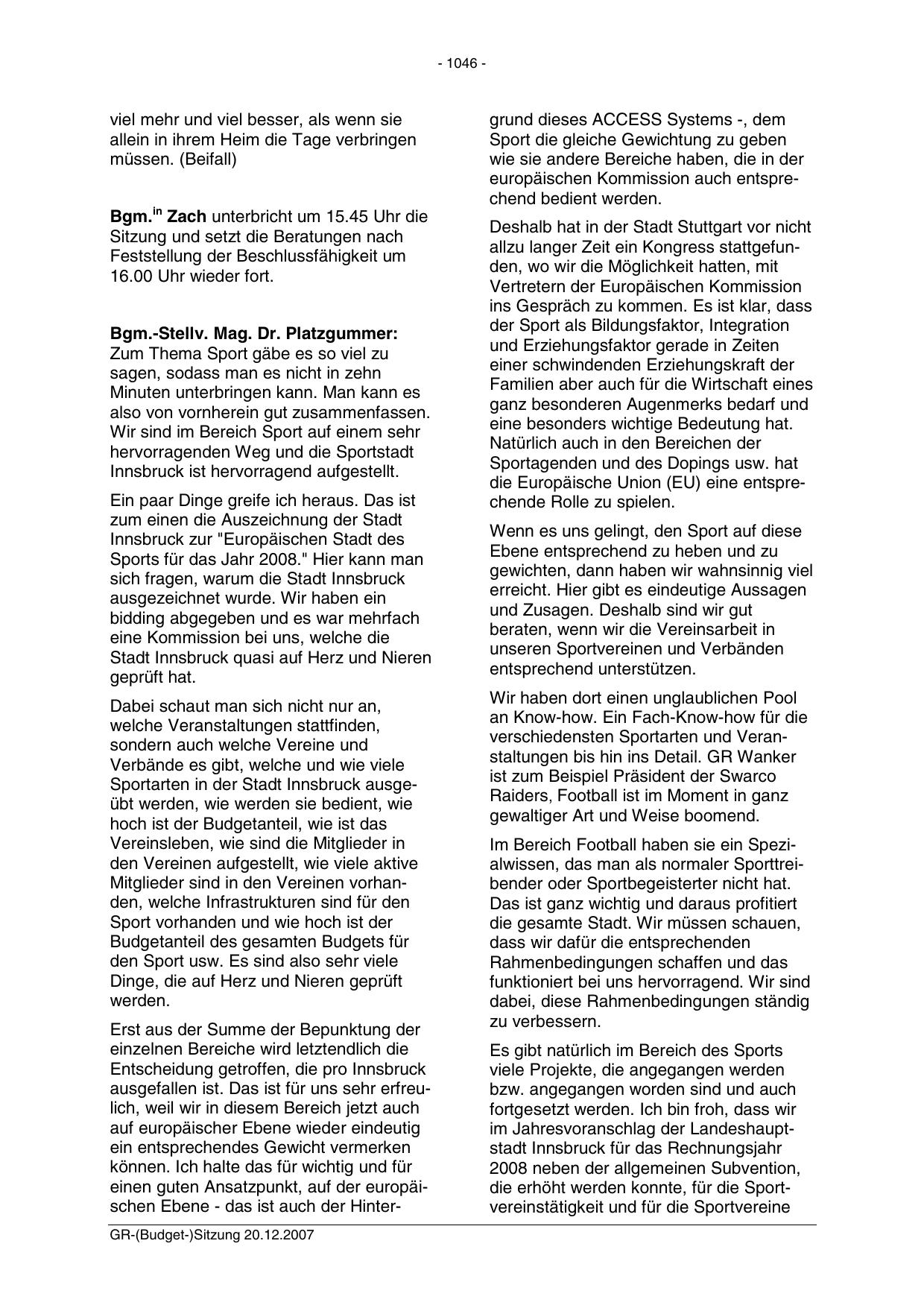 Bgm.-Stellv. Mag. Dr. Platzgummer: