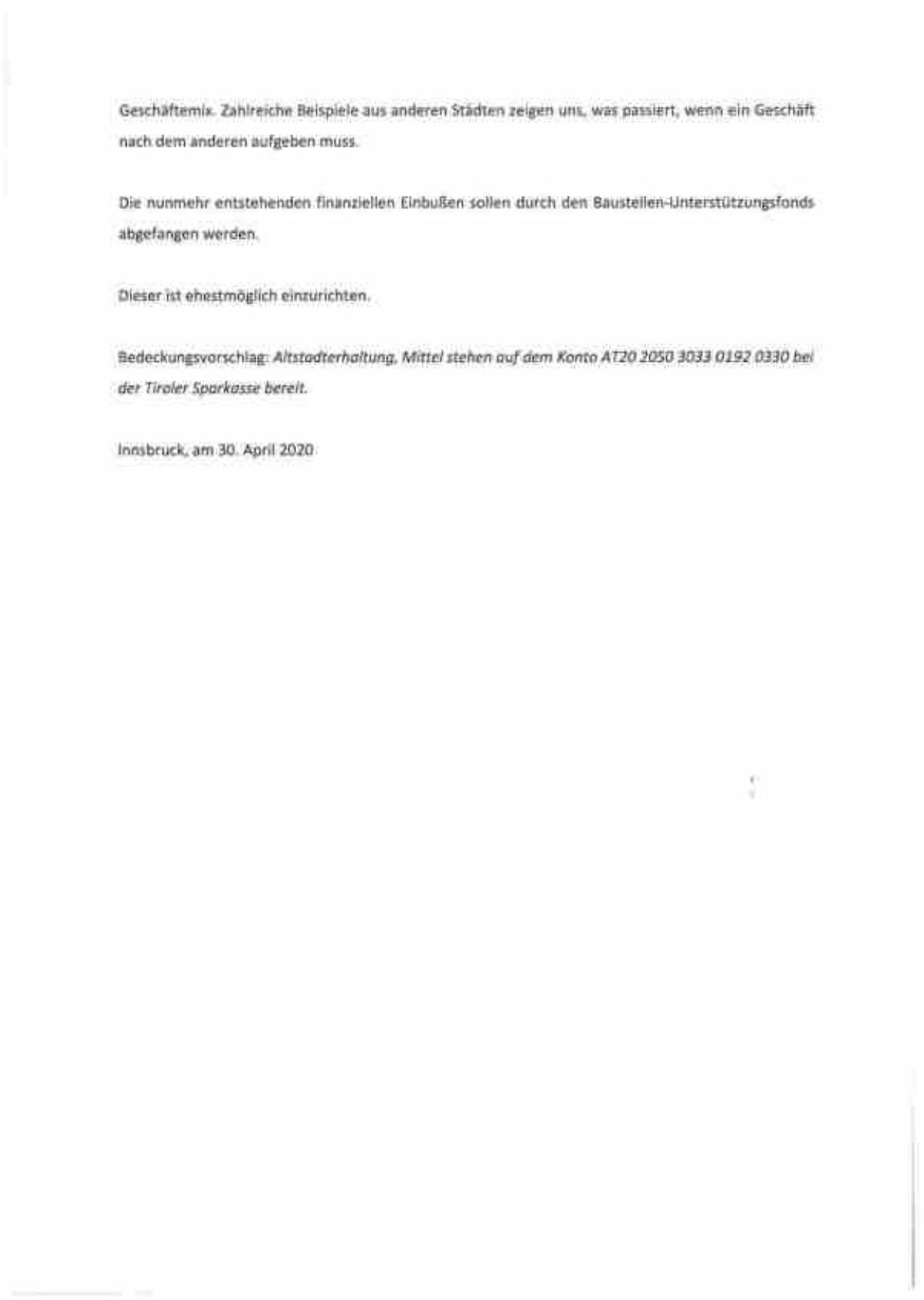 Bedeckungsvorschlag: Altstadterhaltung, Mittel stehen auf dem Konto AT20 2050 3033 0192 0330 bei