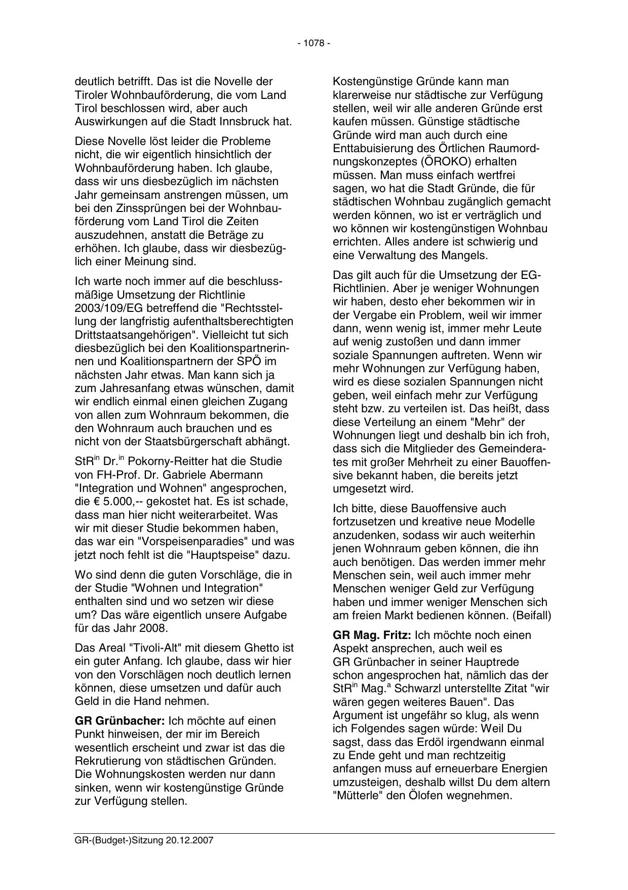 GR-(Budget-)Sitzung 20.12.2007