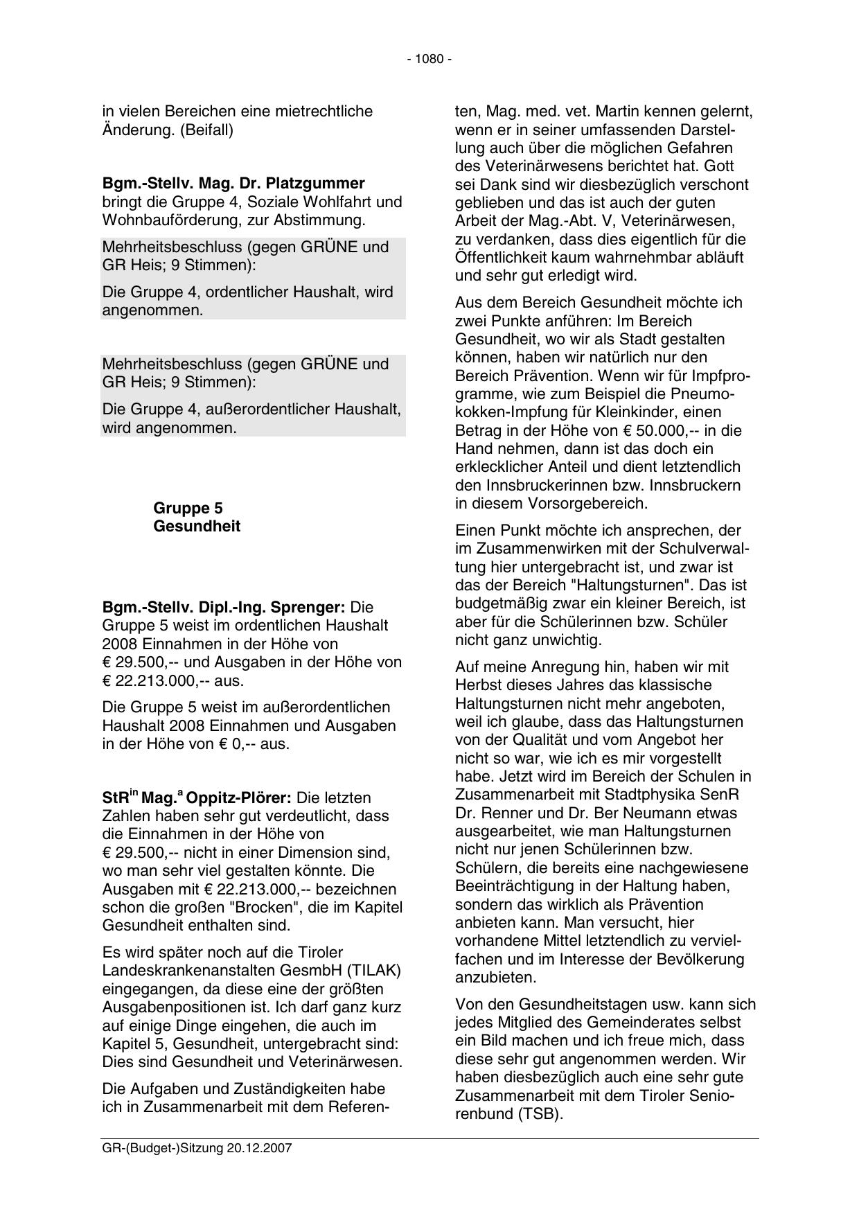 ich in Zusammenarbeit mit dem ReferenGR-(Budget-)Sitzung 20.12.2007