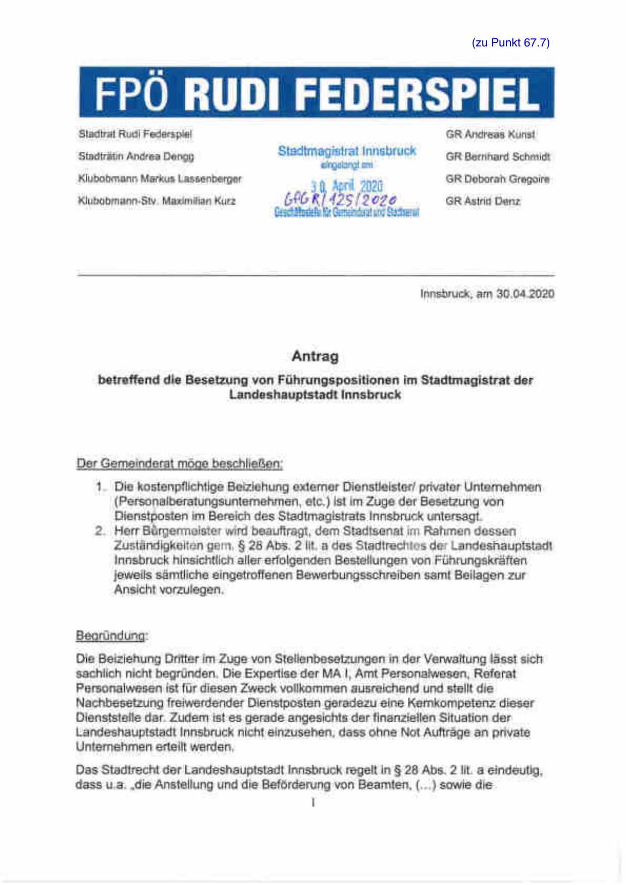 Landeshauptstadt Innsbruck nicht einzusehen, dass ohne Not Aufträge an private