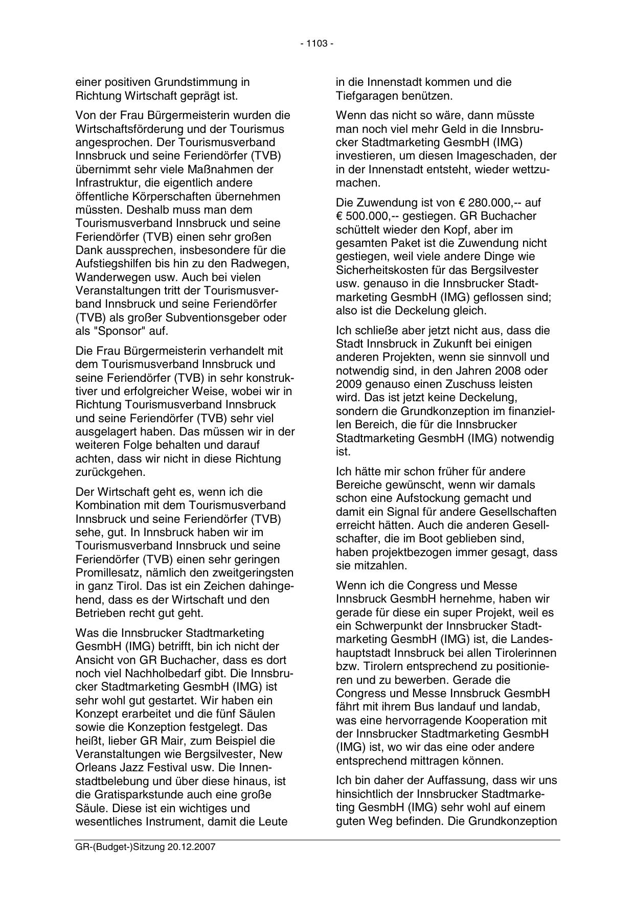 usw. genauso in die Innsbrucker Stadtmarketing GesmbH (IMG) geflossen sind;