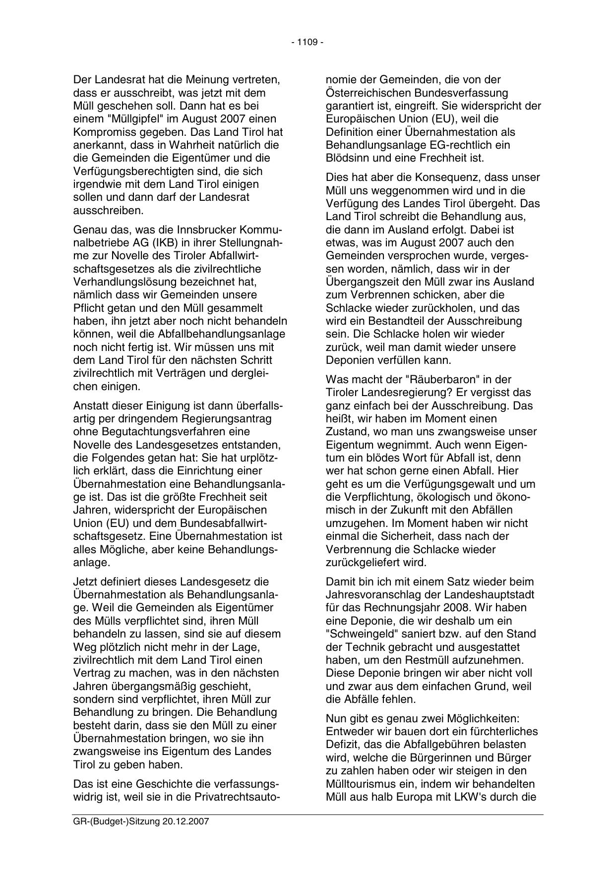 Das ist eine Geschichte die verfassungswidrig ist, weil sie in die PrivatrechtsautoGR-(Budget-)Sitzung 20.12.2007