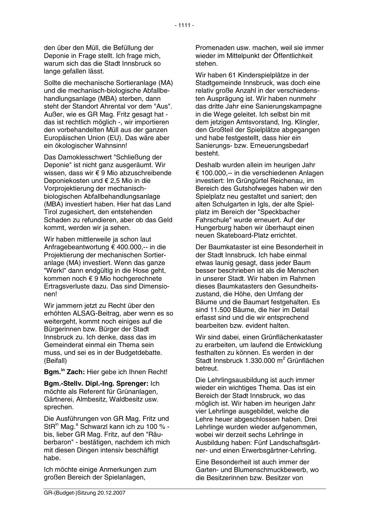 Bgm.-Stellv. Dipl.-Ing. Sprenger: Ich