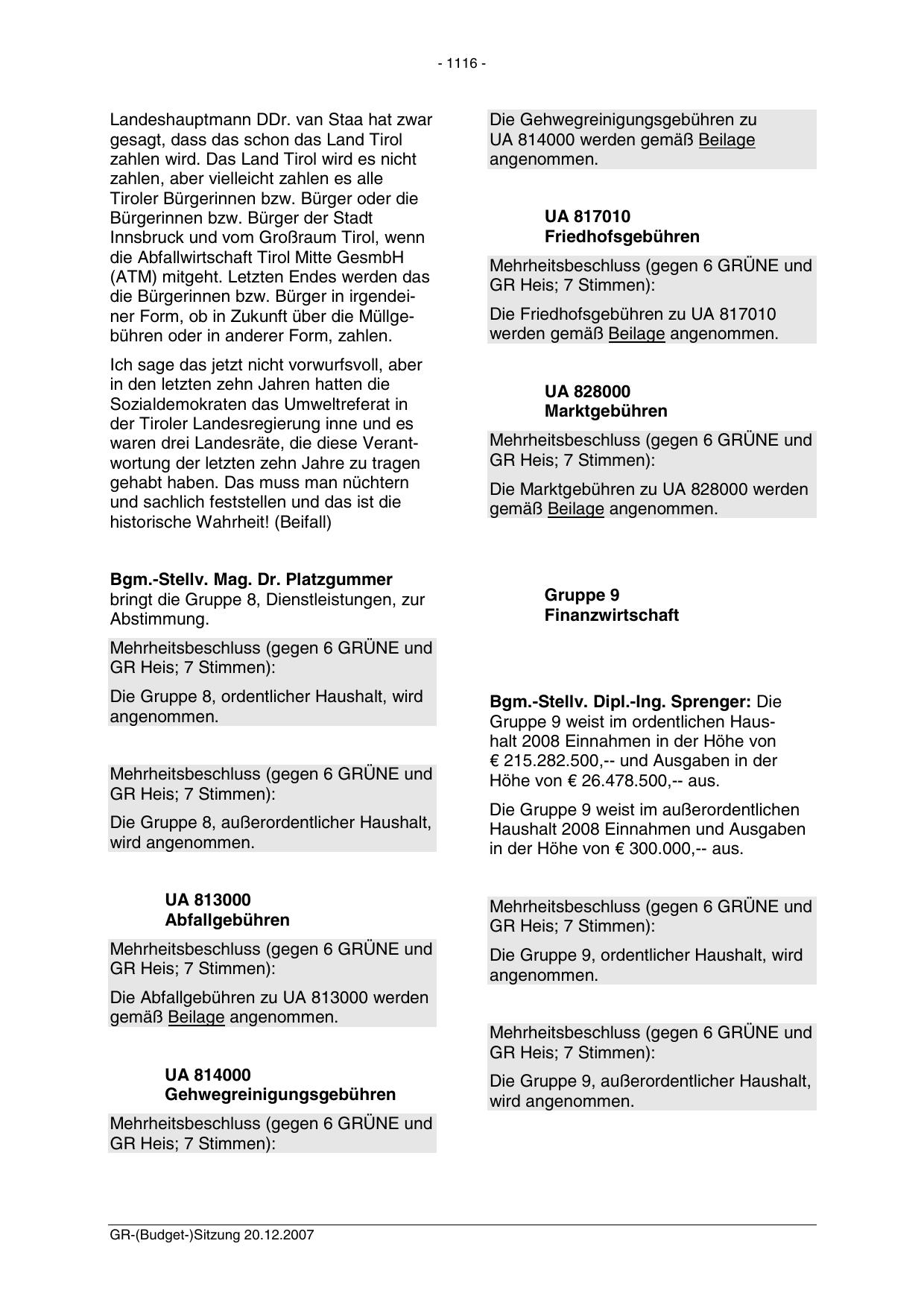 GR-(Budget-)Sitzung 20.12.2007