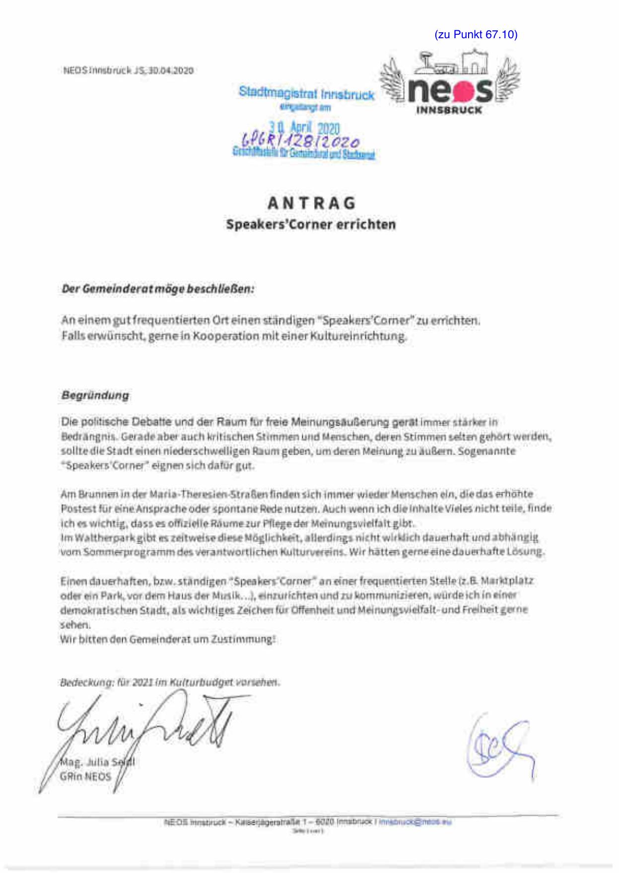 Bedeckung: fü r 2021 im Kulturbudget vorsehen.