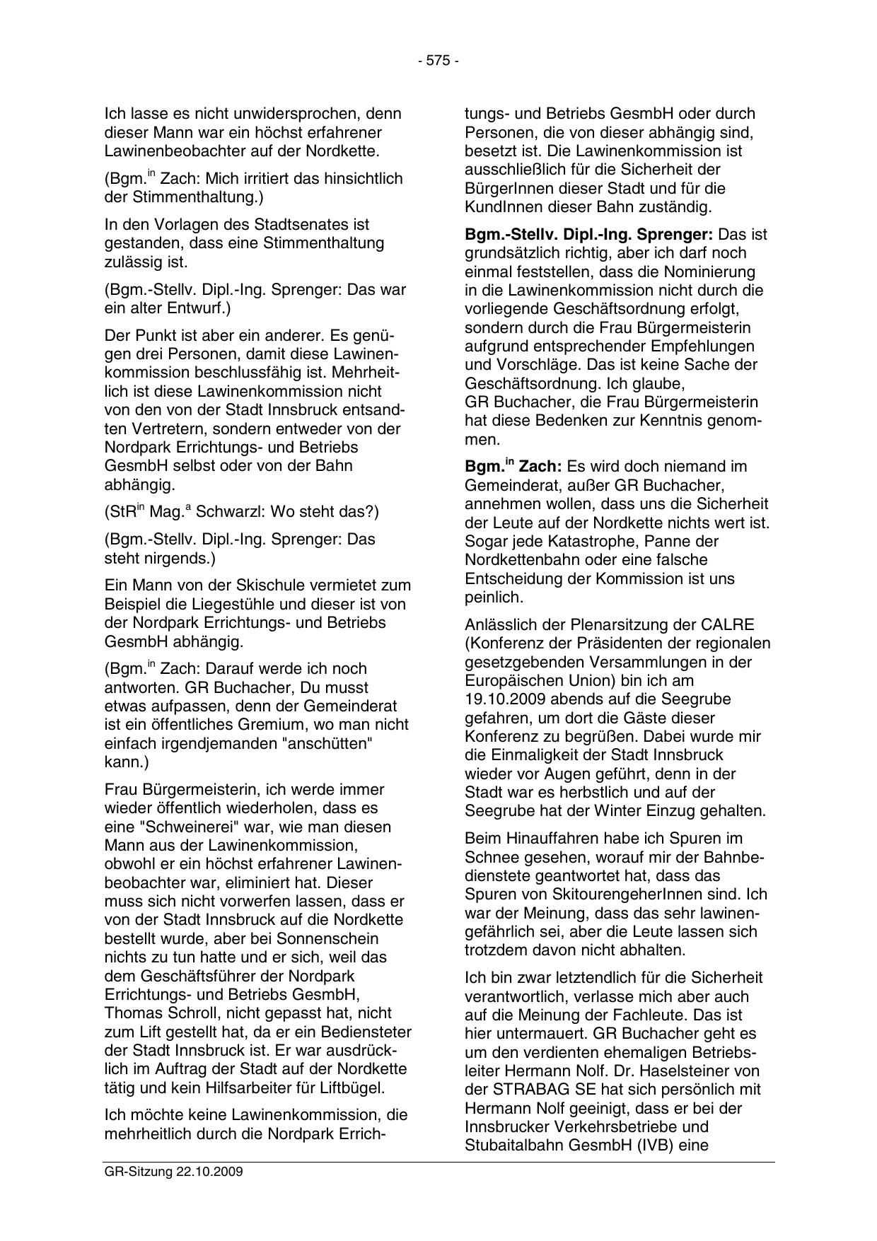 mehrheitlich durch die Nordpark ErrichGR-Sitzung 22.10.2009