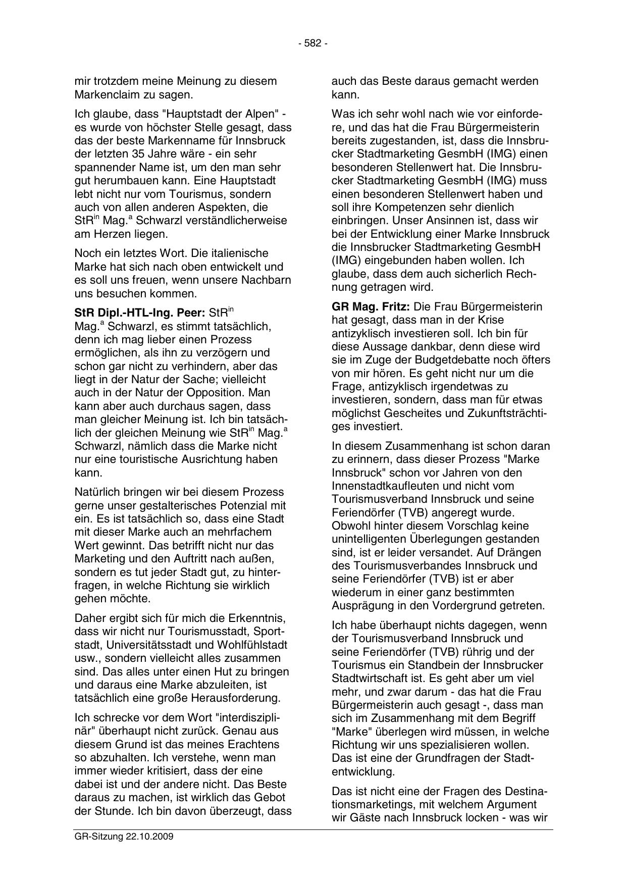 bereits zugestanden, ist, dass die Innsbrucker Stadtmarketing GesmbH (IMG) einen